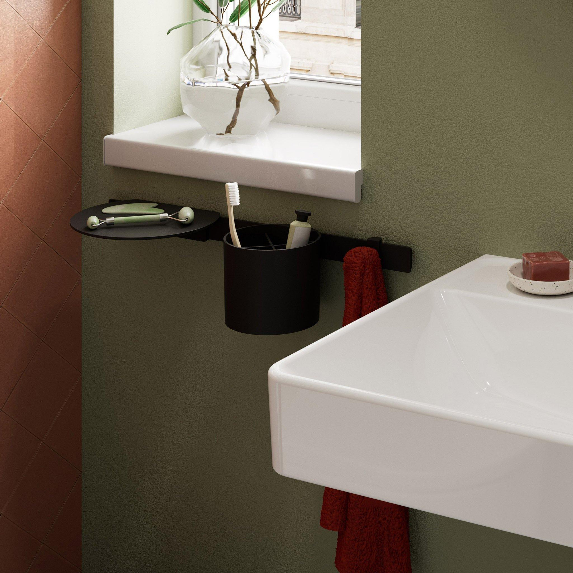 Creëer meer ruimte en orde in jouw badkamer, zelfs als deze klein is, met deze slimme en stijlvolle oplossing. Dit wandelement biedt een praktische manier om al je badkamerbenodigdheden overzichtelijk en binnen handbereik te houden. Dankzij het strakke, matte zwarte design voeg je niet alleen functionaliteit toe, maar ook een moderne uitstraling die naadloos aansluit bij diverse badkamerstijlen. Het systeem is zo ontworpen dat je eenvoudig accessoires kunt combineren en verplaatsen, waardoor je de indeling helemaal naar jouw wensen kunt aanpassen. Bovendien is het bevestigen van dit element bijzonder flexibel en vriendelijk voor jouw muren, wat het ideaal maakt voor zowel huurwoningen als eigen huizen. Zo geniet je van een nette, knusse badkamer zonder gedoe en met volop ruimte voor jouw favoriete producten.
