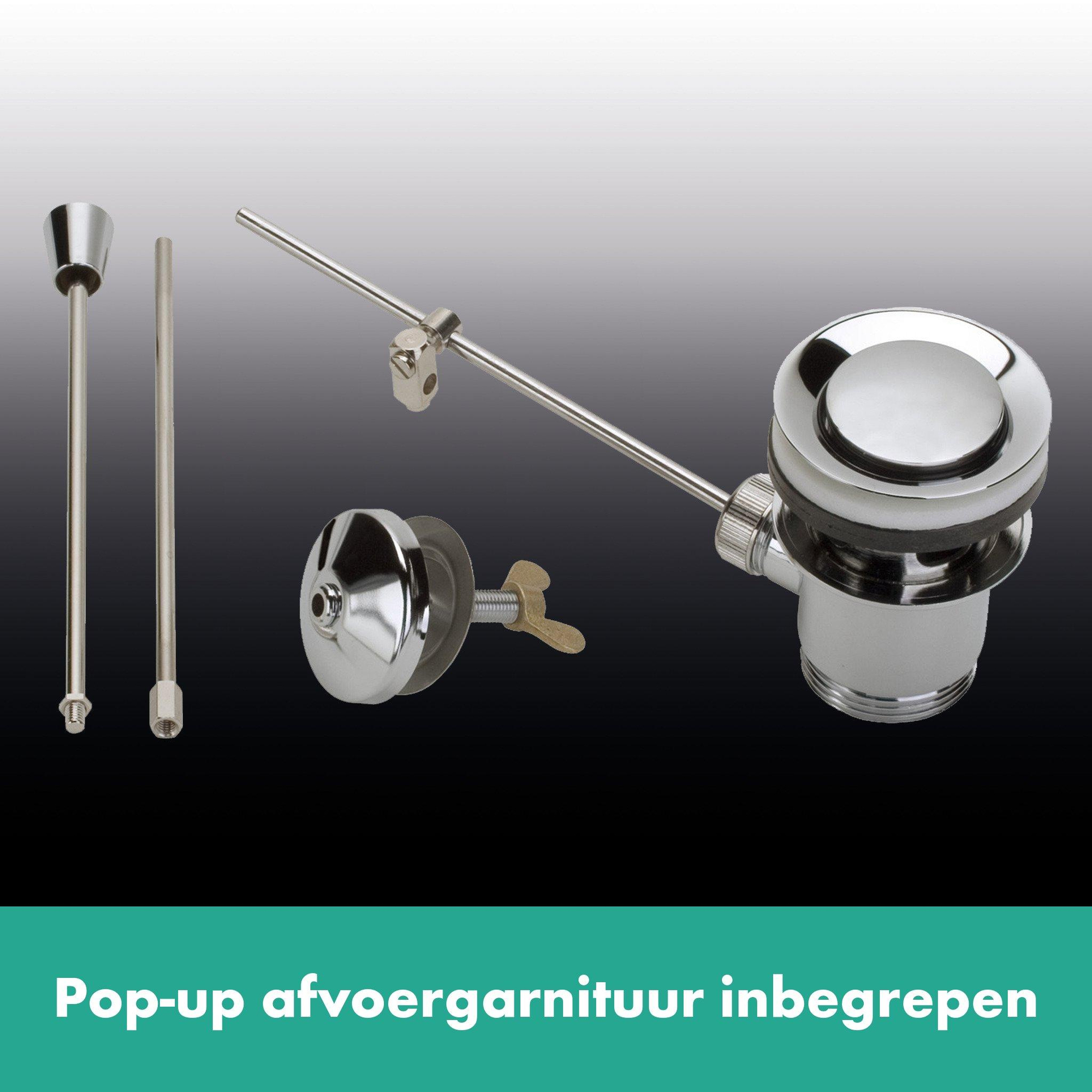 - Pop-up afvoergarnituur van metaal, eenvoudig te bedienen met één hand