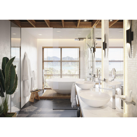 Hansgrohe is het premium merk voor douches, badkamer- en keukenkranen, thermostaten en afvoeren binnen de internationale Hansgrohe Groep. Beloond met talrijke awards vanuit de hele wereld staan de producten van Hansgrohe voor innovatieve technologie, het hoogste niveau van functionele kwaliteit en design. Dat is de grondslag voor het succes van het merk als wereldleider op douchegebied en een van de meest toonaangevende sanitairfabrikanten wereldwijd. Met uitvindingen zoals de glijstang, verstelbare douchestralen, QuickClean anti-kalksysteem, AirPower, EcoSmart en CoolStart en de Select technologie geldt Hansgrohe als innovatief leider in de internationale sanitairbranche. |