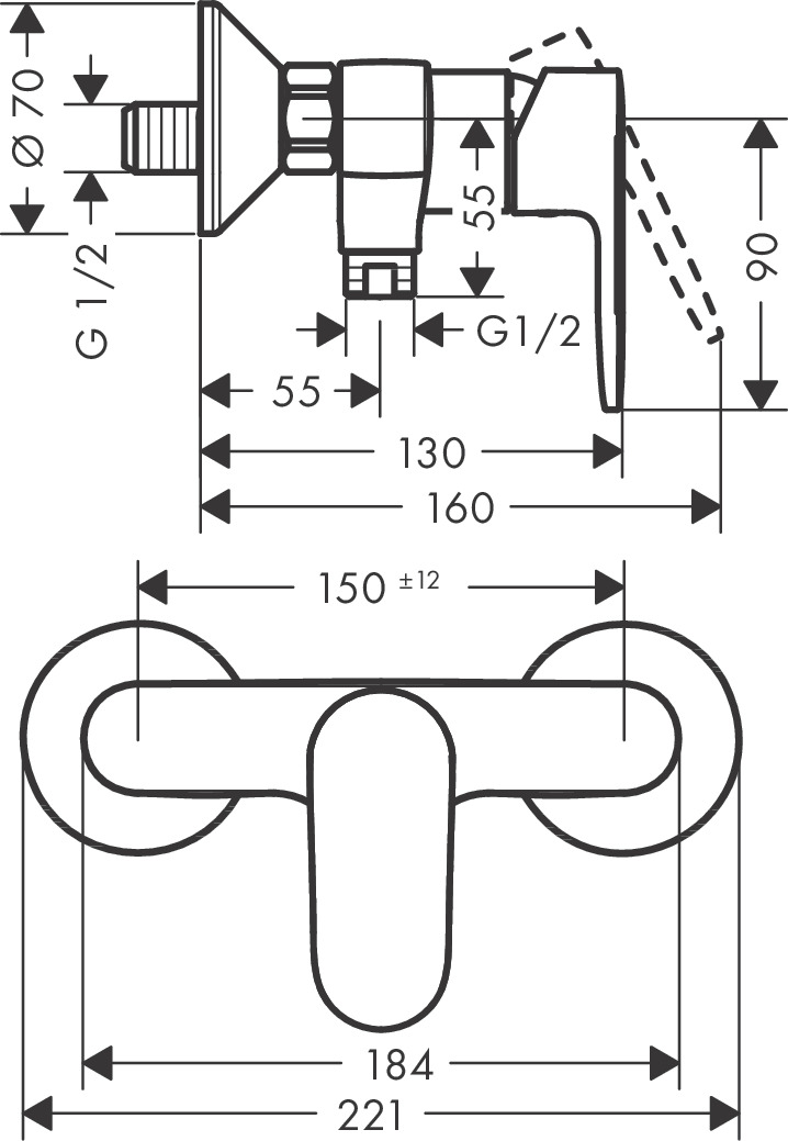 - Geschikt voor opbouwmontage op standaard S-aansluitingen (G 1/2; DN15)
