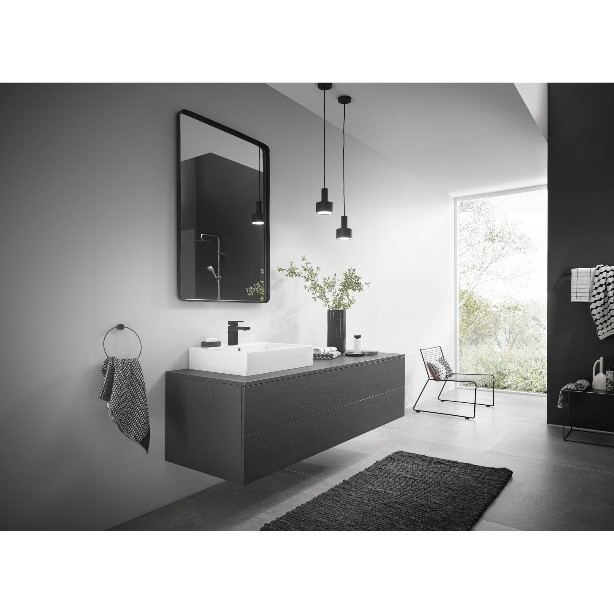 Het matte zwarte oppervlak van deze kraan is een echte blikvanger in je badkamer. De combinatie van strakke lijnen en zachte rondingen zorgt voor een modern en elegant ontwerp dat moeiteloos aansluit bij eigentijdse interieurs. Door de hoogwaardige afwerking behoudt de kraan zijn fraaie uitstraling, zelfs na jarenlang gebruik. Zo geef je jouw badkamer een luxe uitstraling zonder dat het te opzichtig wordt. Bovendien is mat zwart een kleur die goed combineert met diverse materialen en kleuren, waardoor je veel vrijheid hebt in het samenstellen van je badkamer.