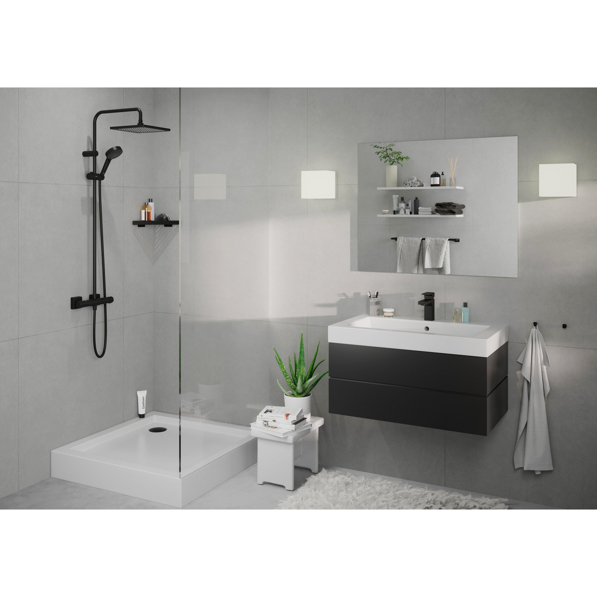 Het design van deze kraan is doordacht modern, met strakke lijnen en een minimalistische vormgeving die perfect aansluit bij eigentijdse badkamers. De matte zwarte kleur zorgt voor een krachtige, eigentijdse uitstraling die direct in het oog springt zonder te overheersen. Dankzij de soepele 1-hendel bediening regel je moeiteloos de watertemperatuur en -druk, wat het gebruiksgemak aanzienlijk verhoogt. Bovendien zijn de gebruikte materialen van topkwaliteit, wat zorgt voor een lange levensduur en betrouwbare prestaties. Zo haal je een kraan in huis die niet alleen mooi is, maar ook functioneel en duurzaam.