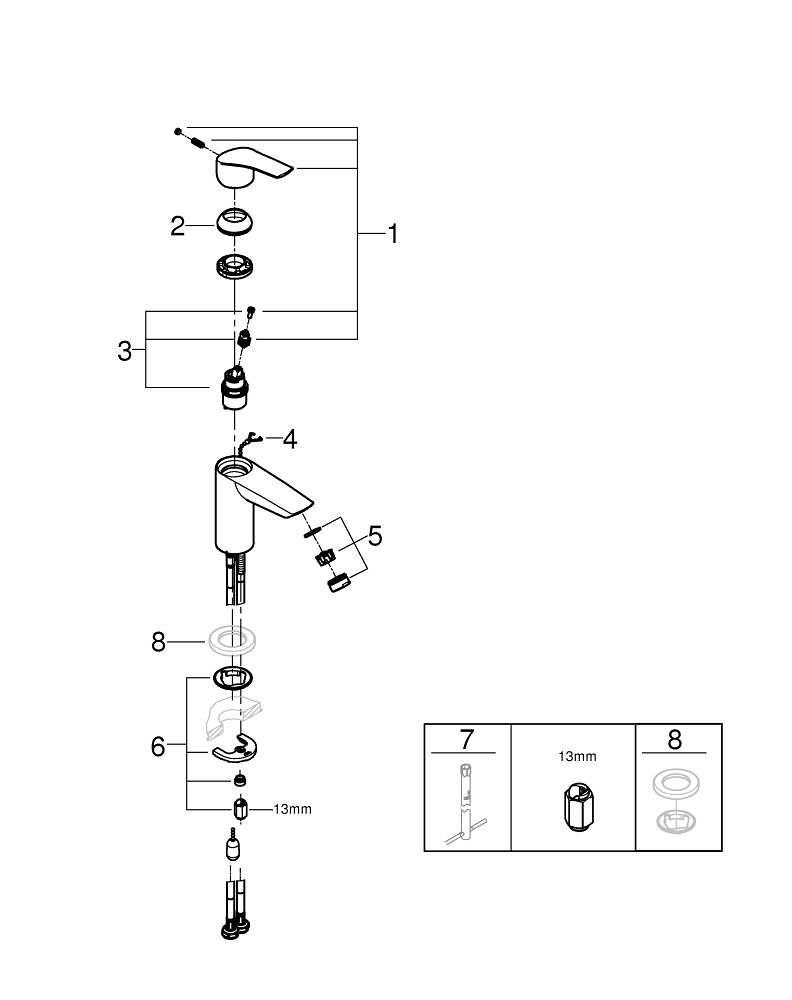 GROHE Eurosmart waterbesparende wastafelkraan s-size met ketting chroom