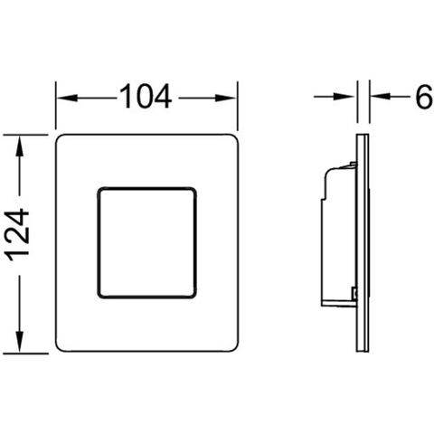 - Afmetingen: 104 mm breed, 124 mm hoog, 6 mm diep