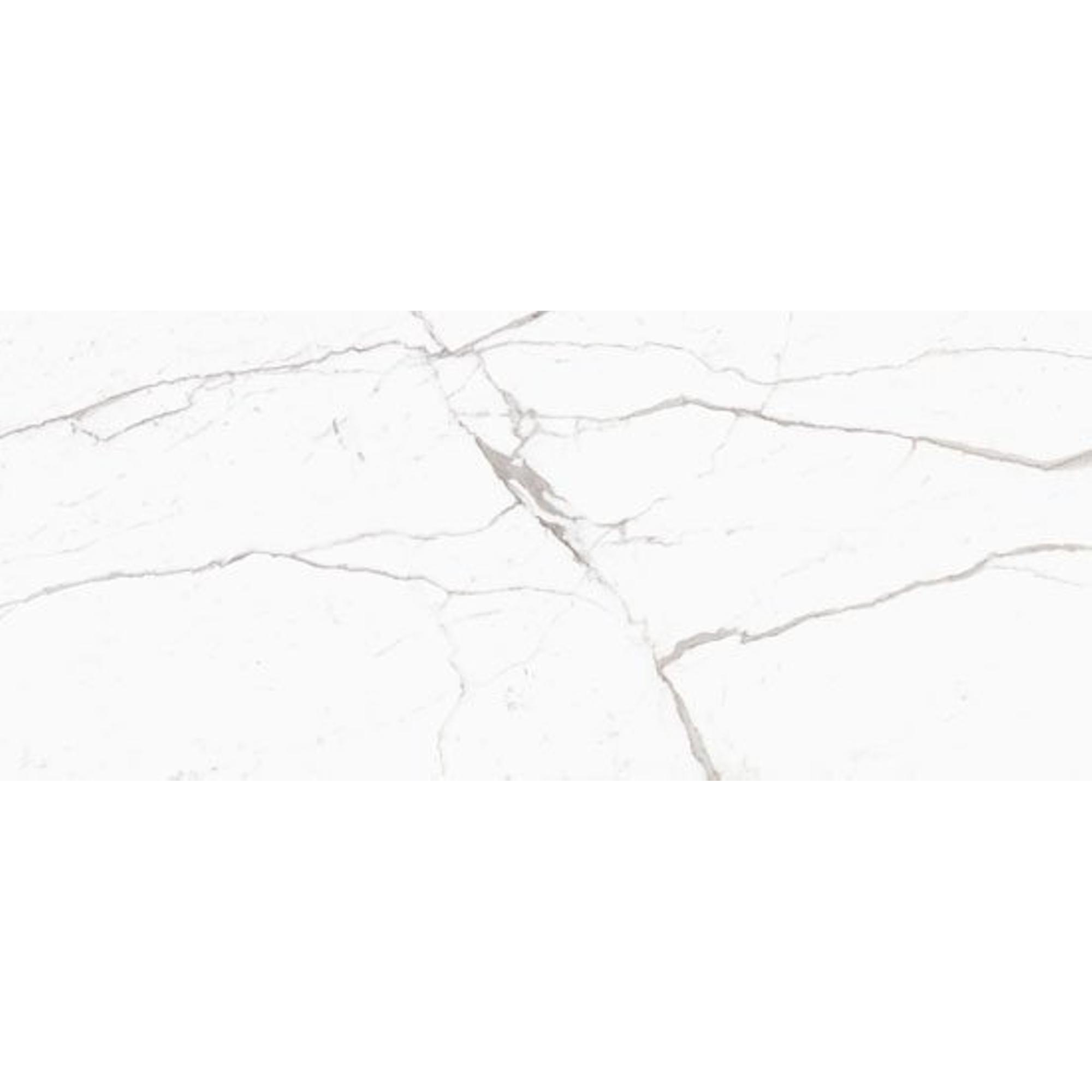 De verfijnde Statuario Venato marmerlook geeft je wanden een exclusieve, bijna architectonische uitstraling. De heldere witte achtergrond in combinatie met elegante, grijze aders zorgt voor een rustige doch luxe basis waar sanitair en meubels prachtig tegen afsteken. Door de glanzende afwerking wordt het licht in de ruimte subtiel weerkaatst, wat vooral in kleinere badkamers of donkere hoeken een groot verschil maakt. Je creëert met deze keramische marmerlook tegel moeiteloos het gevoel van een luxe spa of boetiekhotel, terwijl je toch profiteert van de praktische voordelen van porcellanato. Of je nu kiest voor volledig betegelde wanden of één statementwand: deze stijl raakt niet snel uit de mode en blijft jarenlang mooi.Grote gerectificeerde tegel voor een strak eindresultaat