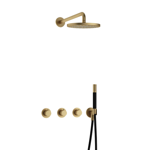 Ervaar de perfecte combinatie van elegantie en functionaliteit met deze inbouw regendoucheset. Het geraffineerde ontwerp transformeert jouw badkamer in een oase van rust en luxe, waar je elke dag kunt genieten van een verfrissende en ontspannende douche. Dankzij de royale afmetingen van de wandarm en hoofddouche omhult het water je lichaam als een zachte regenbui, terwijl de staafhanddouche je extra bewegingsvrijheid biedt om precies te richten waar jij dat wilt. De warme, geborsteld messing afwerking voegt een tijdloze charme toe en zorgt ervoor dat deze set moeiteloos aansluit bij uiteenlopende interieurstijlen. Zo creëer je een badkamer die niet alleen functioneel is, maar ook een visueel hoogtepunt vormt waar je trots op kunt zijn.