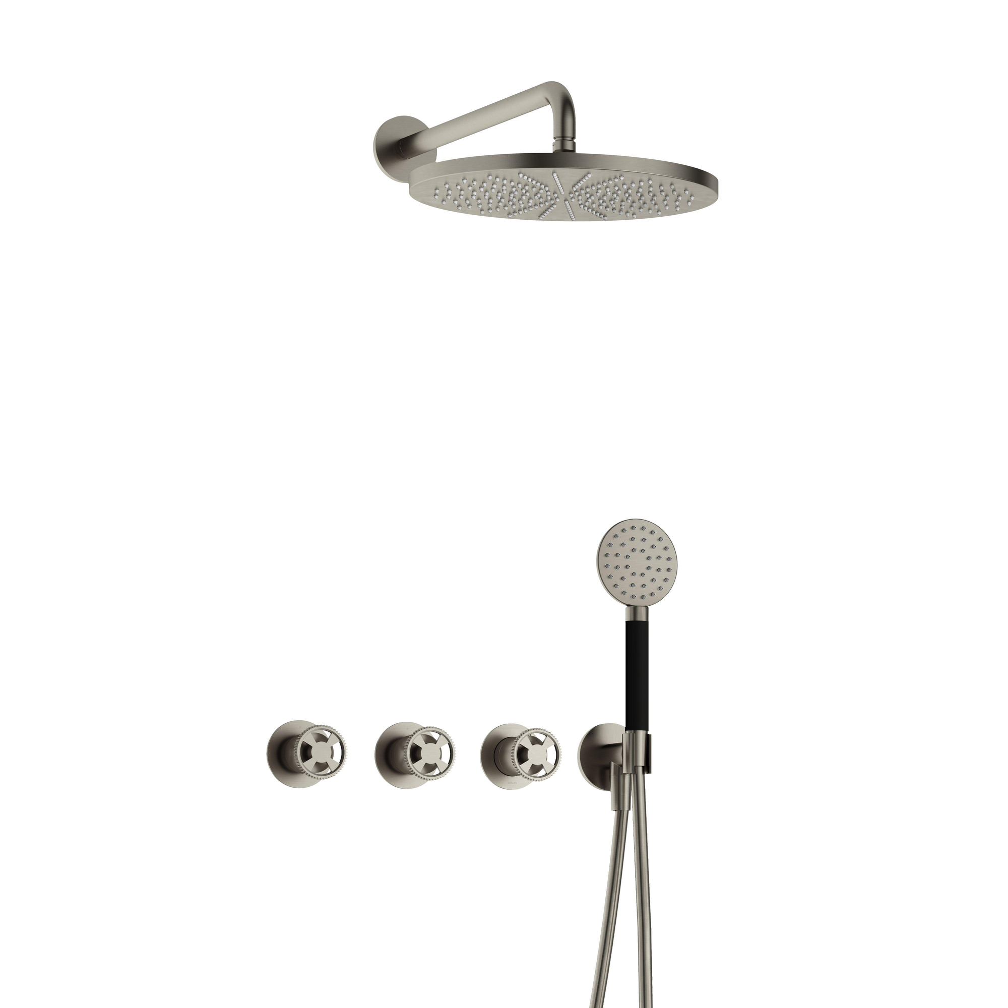 Hotbath Cobber @Work Regendoucheset - inbouw - 38.5cm wandarm - 30cm ronde hoofddouche - 3 standen handdouche - Geborsteld nikkel