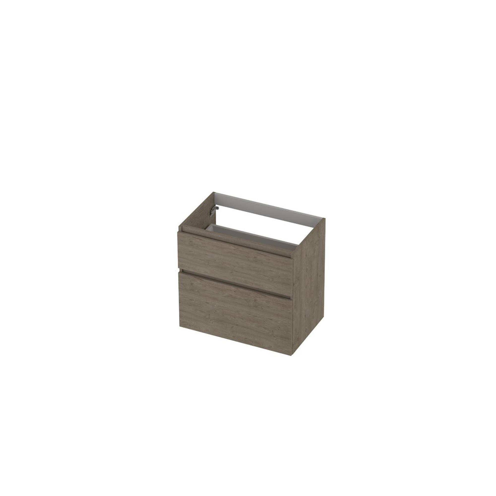 INK Wastafelonderkast - 70x45x65cm - 2 lades - greeploos - houten keerlijst - a symmetrisch - MFC Greige eiken