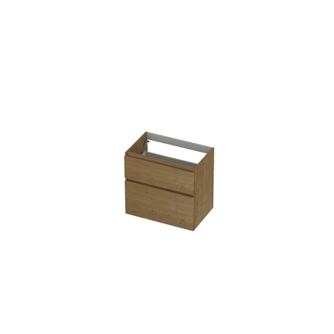 INK Fineer 45 Wastafelonderkast - 70x45x65cm - 2 lades - greeploos - houten keerlijst - a symmetrisch - MDF Fineer Natur