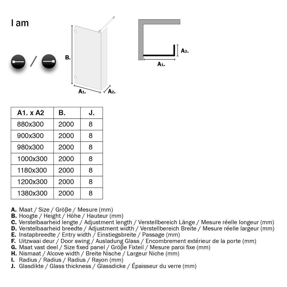 UniekDeze glaswand met 90 graden profiel kun je combineren met iedere maat I AM walk in douchewand type A3. Samen maken ze een bijzondere inloopdouche die nét even wat beter het water in de doucheruimte houdt. Wat deze wand écht bijzonder maakt, is de stoere RVS (look) afwerking. Zo breng je een unieke sfeer in je badkamer. Het veiligheidsglas van maar liefst 8 mm is altijd voorzien van een antikalk laag waardoor kalk en viezigheid zich minder snel zal hechten.
