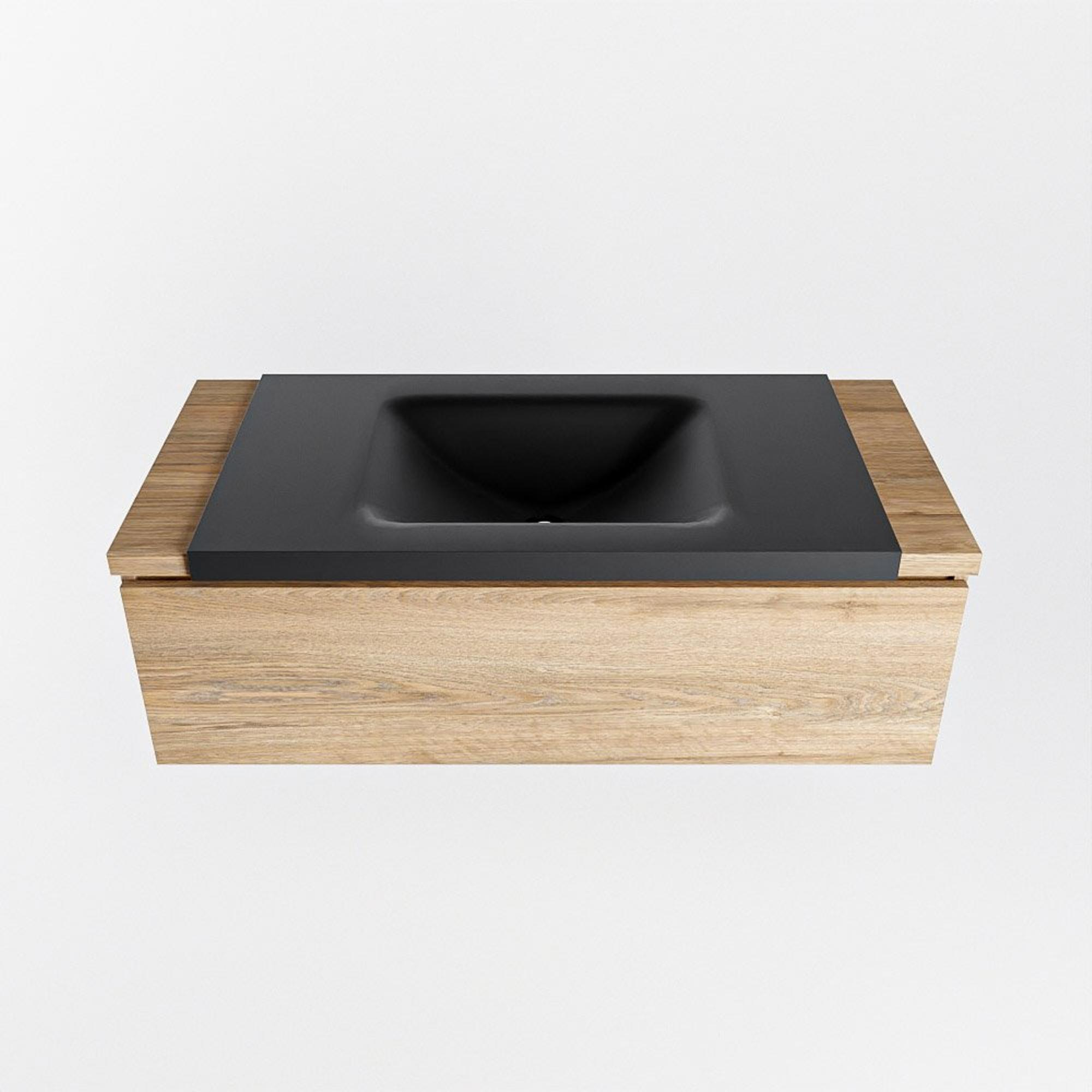 Mondiaz BUKLA Badkamermeubelset - 100x45x34cm - 1 kraangat - wasbak midden - solid surface - Urban - greeploos - 1 lade - Melamine - Washed Oak