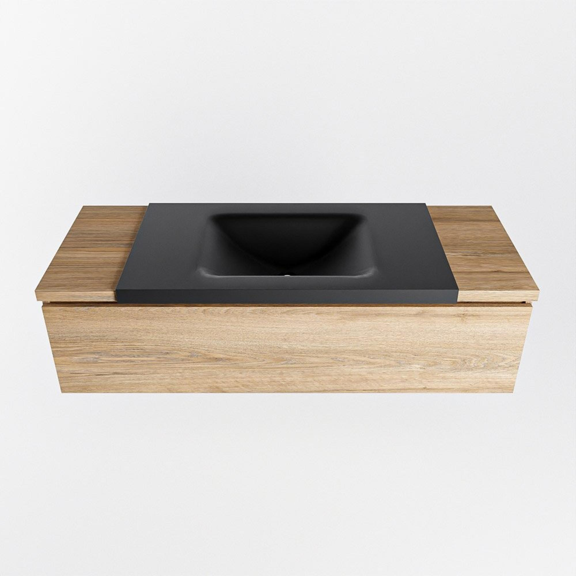 Mondiaz BUKLA Badkamermeubelset - 120x45x34cm - 0 kraangaten - wasbak midden - solid surface - Urban - greeploos - 1 lade - Melamine - Washed Oak