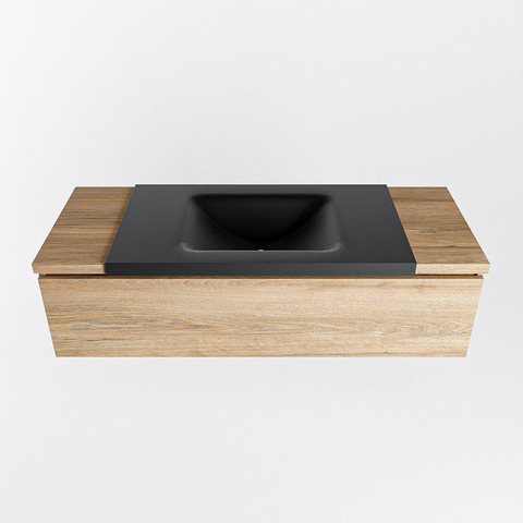 Mondiaz BUKLA Badkamermeubelset - 120x45x34cm - 1 kraangat - wasbak midden - solid surface - Urban - greeploos - 1 lade - Melamine - Washed Oak