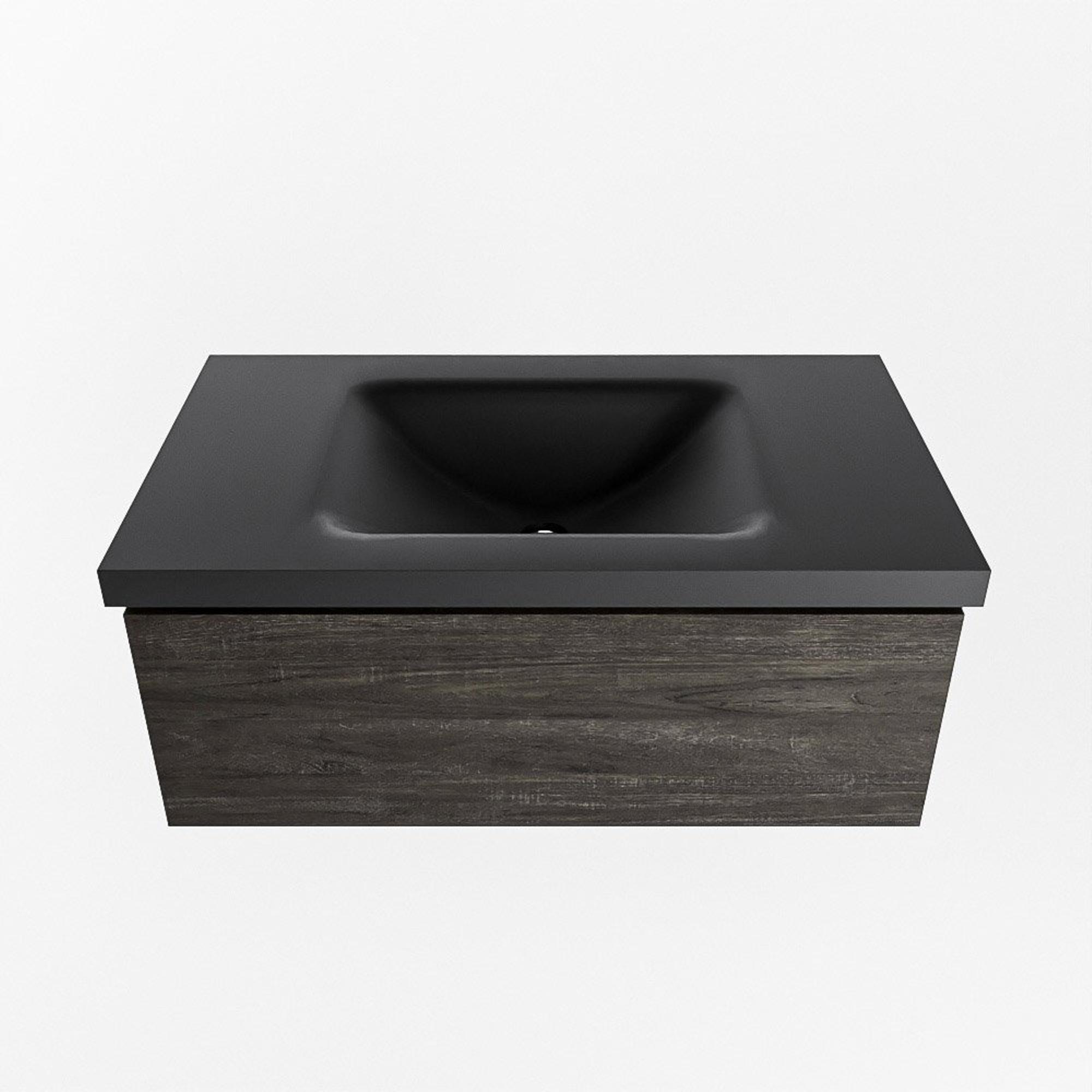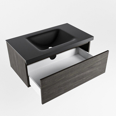Mondiaz BUKLA Badkamermeubelset - 80x45x34cm - 0 kraangaten - wasbak midden - solid surface - Urban - greeploos - 1 lade - Melamine - Dark brown