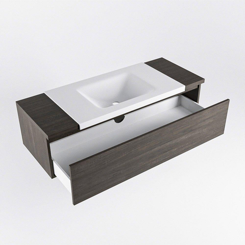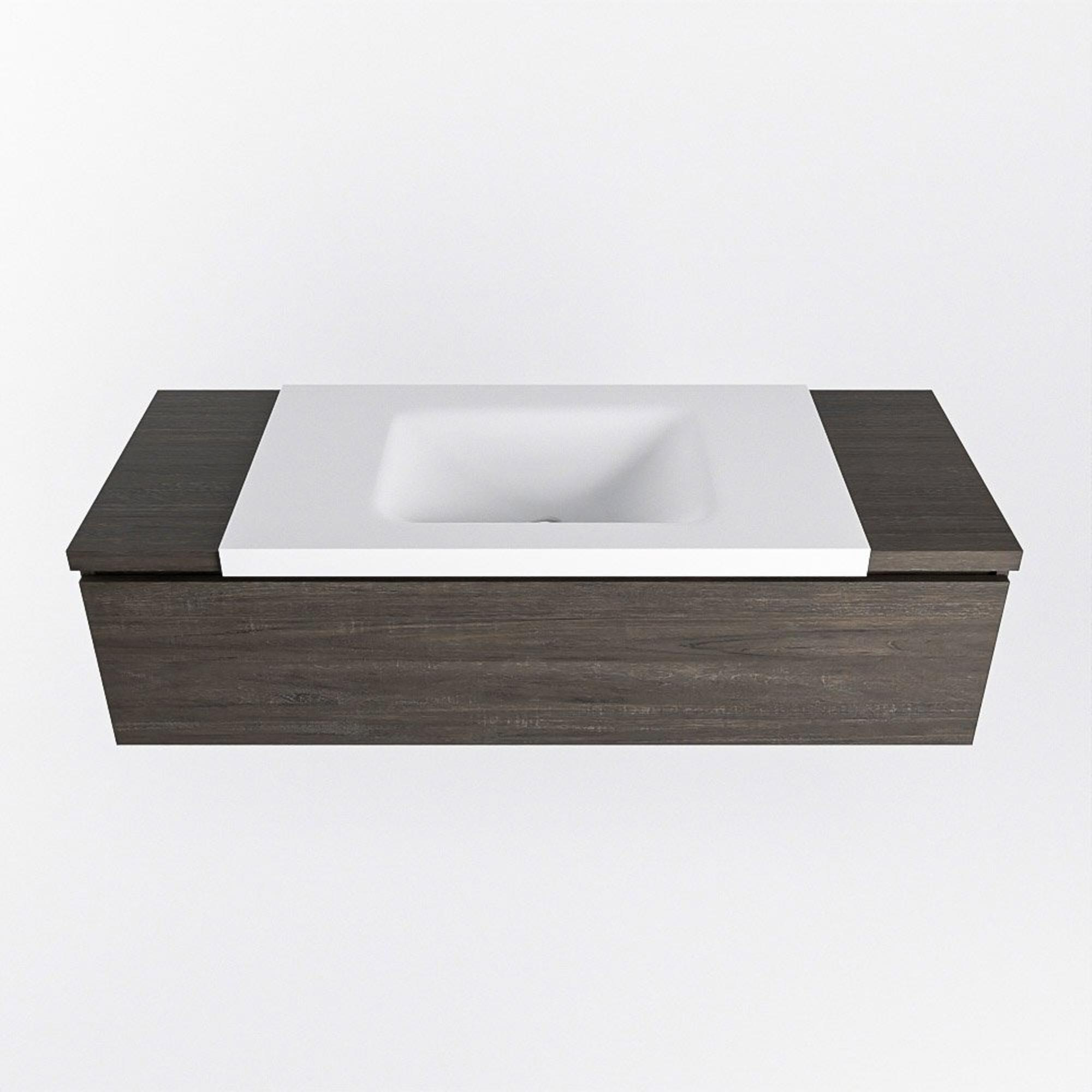 Mondiaz BUKLA Badkamermeubelset - 120x45x34cm - 1 kraangat - wasbak midden - solid surface - Talc - greeploos - 1 lade - Melamine - Dark brown