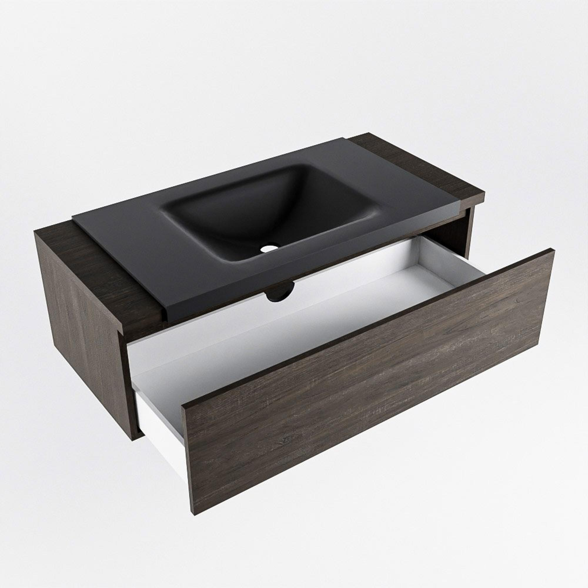 Mondiaz BUKLA badkamermeubelset 100x45x34cm 0 kraangaten wasbak midden solid surface Urban greeploos 1 lade met softclose Melamine Dark brown