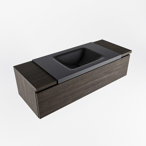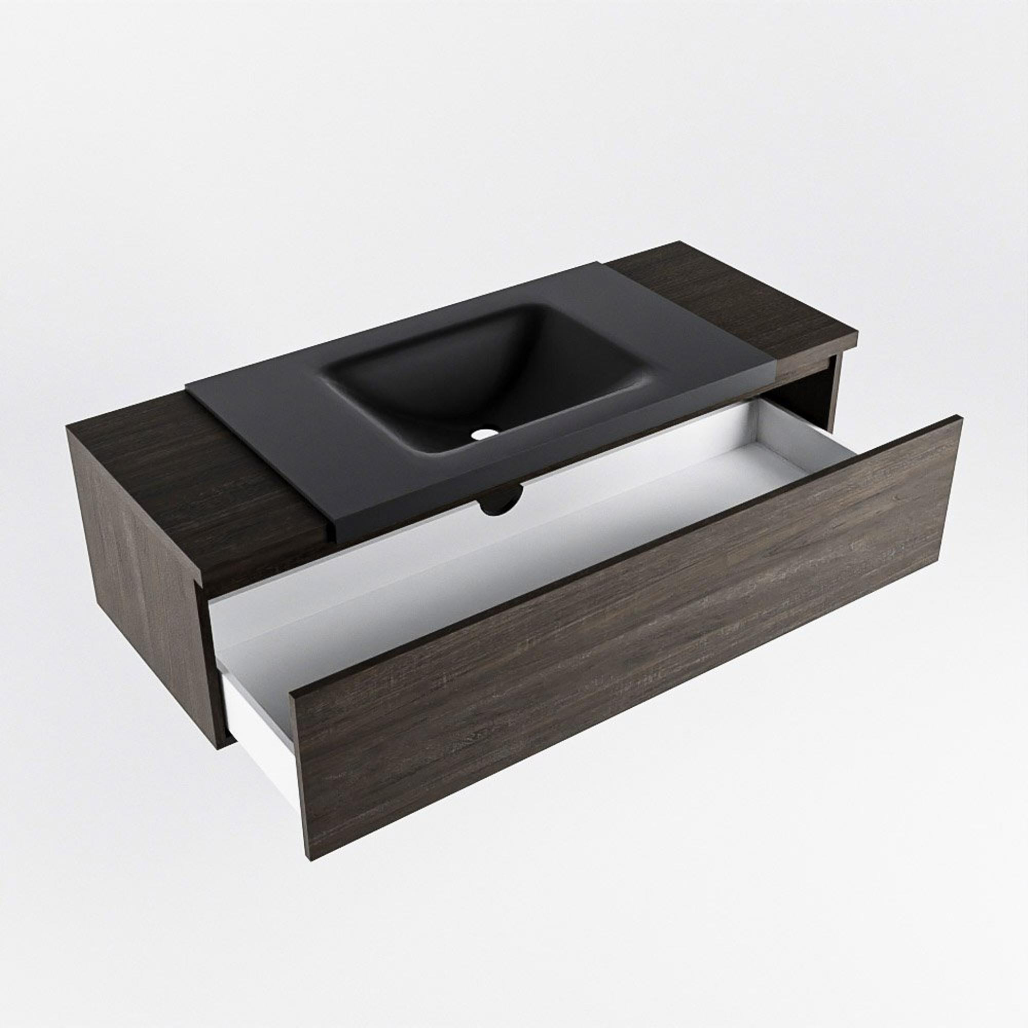 Mondiaz BUKLA badkamermeubelset 120x45x34cm 1 kraangat wasbak midden solid surface Urban greeploos 1 lade met softclose Melamine Dark brown