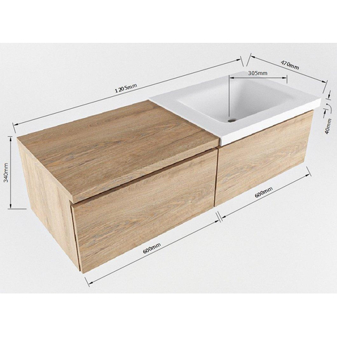 Mondiaz BUKLA badkamermeubelset 120x45x34cm 0 kraangaten wasbak rechts solid surface Urban greeploos 2 lades met softclose Melamine Dark brown