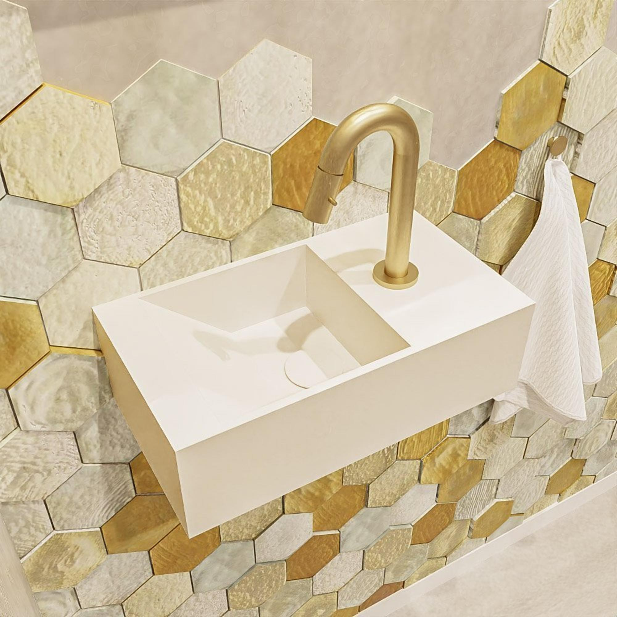 Mondiaz TYNE fontein 40x23x12cm wasbak links 1 kraangat solid surface Talc mat