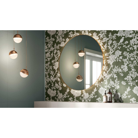 Met het grote formaat van 60x120 cm en het subtiele floral motief creëer je in één keer een echte hotel- of spa-look in je badkamer. De print doet denken aan luxe behang, maar dan met alle voordelen van keramische tegels: waterbestendig, kleurvast en vormvast. De matte Floral Olive tint geeft direct sfeer en werkt prachtig samen met natuurlijke materialen zoals houtlook, betonlook of lichte marmertegels. Gebruik de decorstrip als doorlopende accentwand of combineer enkele stroken met rustige basistegels voor een speels maar toch gebalanceerd geheel. Zo geef je jouw badkamer een eigen signatuur, zonder dat de ruimte druk of onrustig aanvoelt.