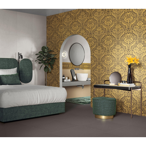 Deze decortegel is ontworpen om op te vallen: het grafische motief en de warme Tian Ocre-kleur zorgen samen voor een unieke, bijna artistieke uitstraling. Waar een effen wandtegel vooral rust brengt, geeft deze variant jouw badkamer net dat stukje persoonlijkheid en beleving. Het grote formaat van 60x120 cm versterkt het behang-effect, waardoor je met relatief weinig voegen een doorlopend patroon creëert. Ideaal als je een statement wall wilt maken achter je vrijstaande bad, in de inloopdouche of als luxe achterwand bij je wastafel. Combineer hem met rustige, effen tegels in een bijpassende kleur voor balans, of durf meer contrast te maken met donkere vloertegels en zwarte kranen voor een krachtig, modern geheel.