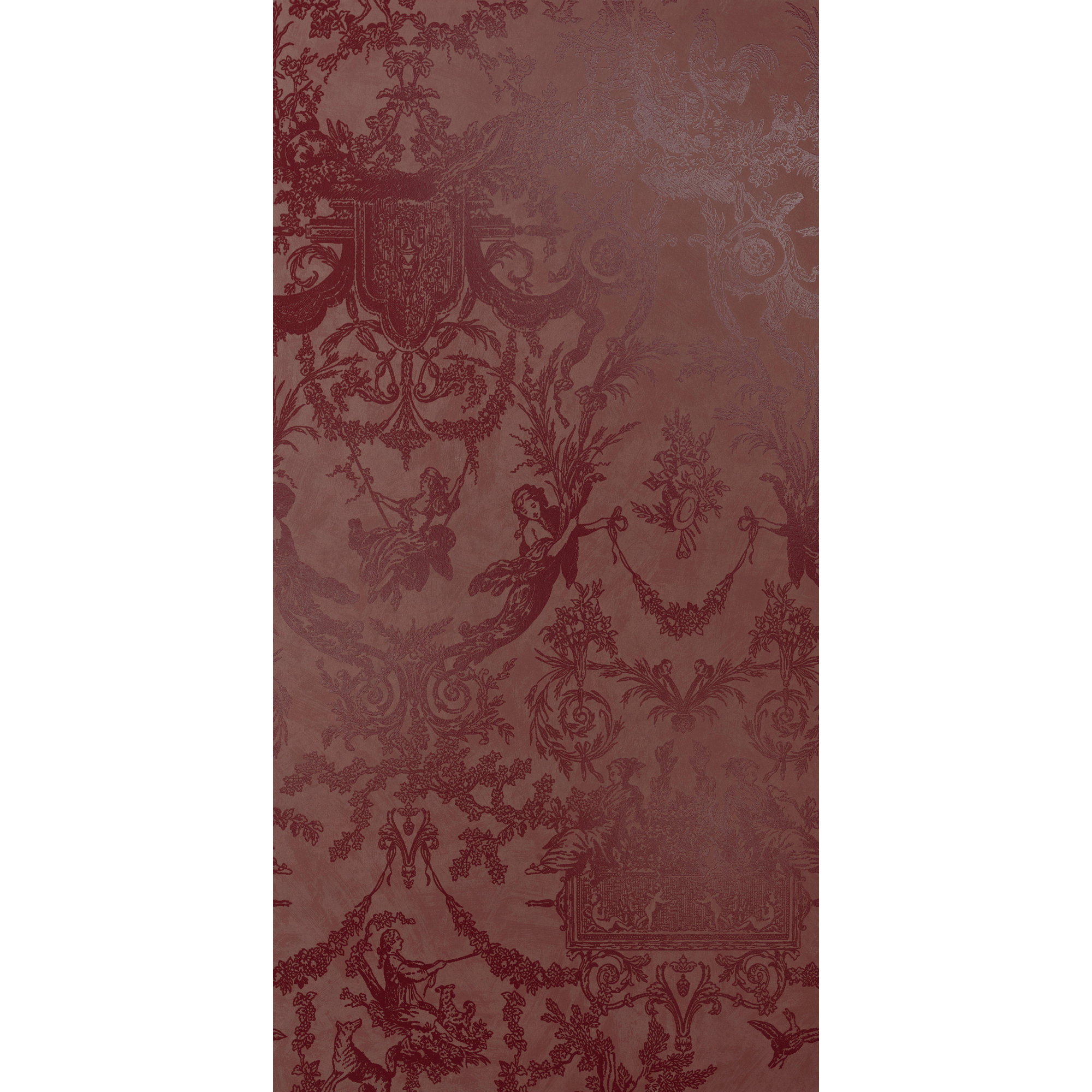 Het karakteristieke Toile de Jouy motief in diepe bordeaux tint geeft je ruimte meteen een verfijnde, bijna boutique-achtige uitstraling. Het dessin lijkt op luxe behang, maar dan in de praktische vorm van keramische tegels: ideaal als je sfeer en persoonlijkheid wilt toevoegen zonder in te leveren op gebruiksgemak. Door het grote formaat komt het patroon prachtig tot zijn recht, met weinig herhalingen en een rustig totaalbeeld. Combineer de decor-tegel met rustige uni-wandtegels of betonlook tegels voor een moderne, uitgebalanceerde look, of ga juist voor een uitgesproken hotelchic stijl met warme metalen zoals goud of messing in kranen en accessoires.