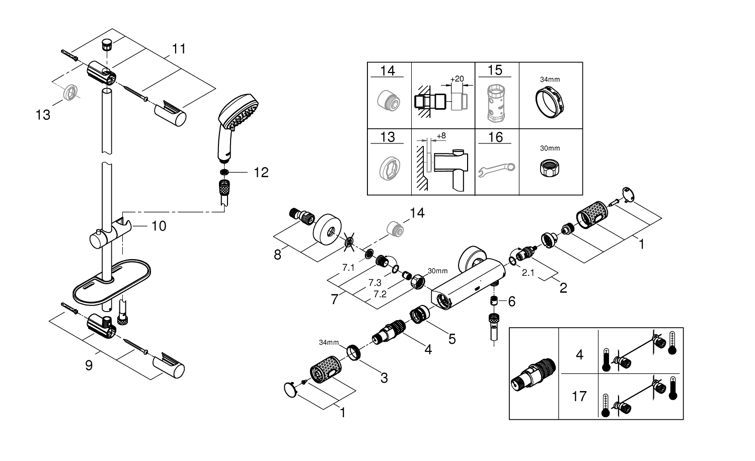 geschikt om te schroeven (inclusief schroeven en pluggen) of lijmen (GROHE QuickGlue S 41 247 000 wordt apart verkocht - 2 x nodig)