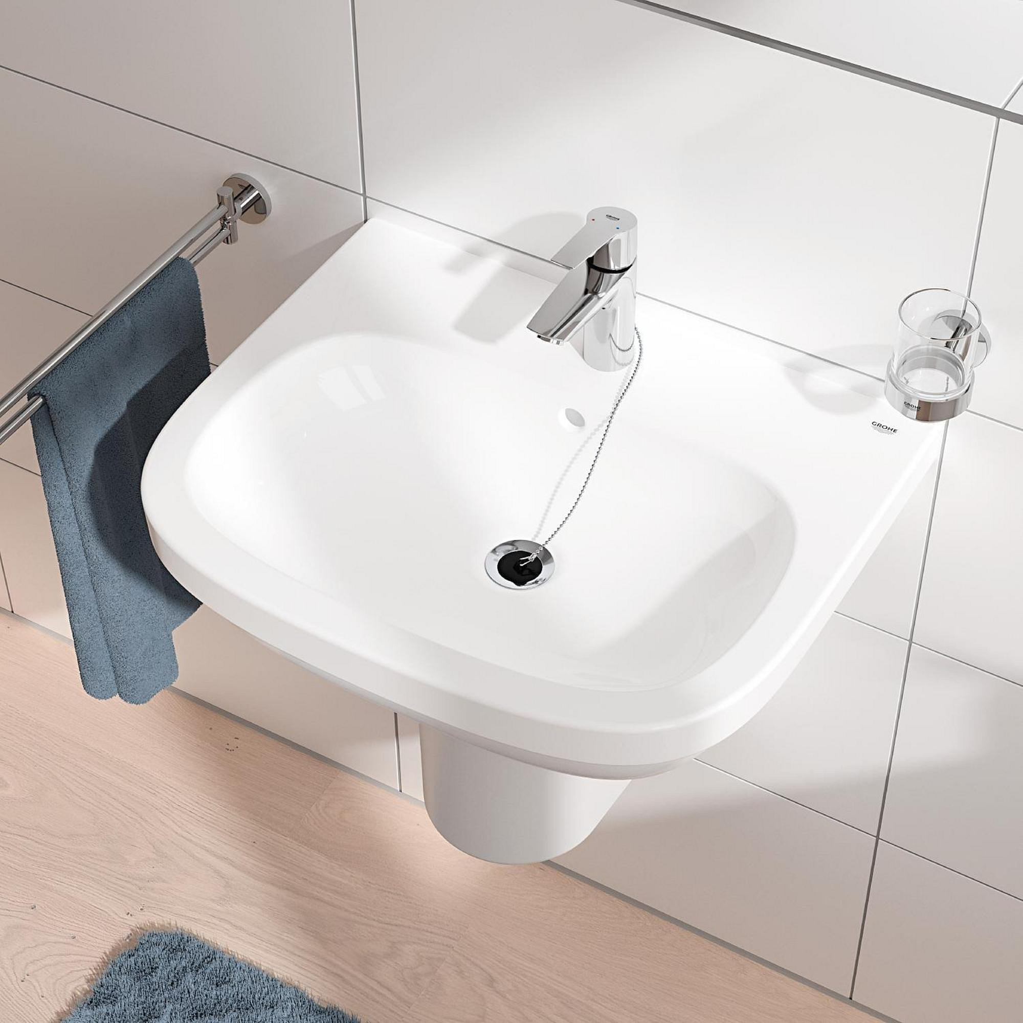 De bediening van de kraan is soepel en nauwkeurig dankzij de GROHE SilkMove keramische cartridge. Dit betekent dat je met één hand eenvoudig de watertemperatuur en -hoeveelheid regelt. De kraan is ontworpen voor eengatsmontage en wordt geleverd met flexibele aansluitslangen en handige QuickFix-installatiehulpmiddelen. Hierdoor is het plaatsen van de kraan snel en zonder gedoe geregeld. De vaste uitloop en praktische hoogte maken het gebruik comfortabel, of je nu je handen wast of de wastafel schoonmaakt.Kenmerken: