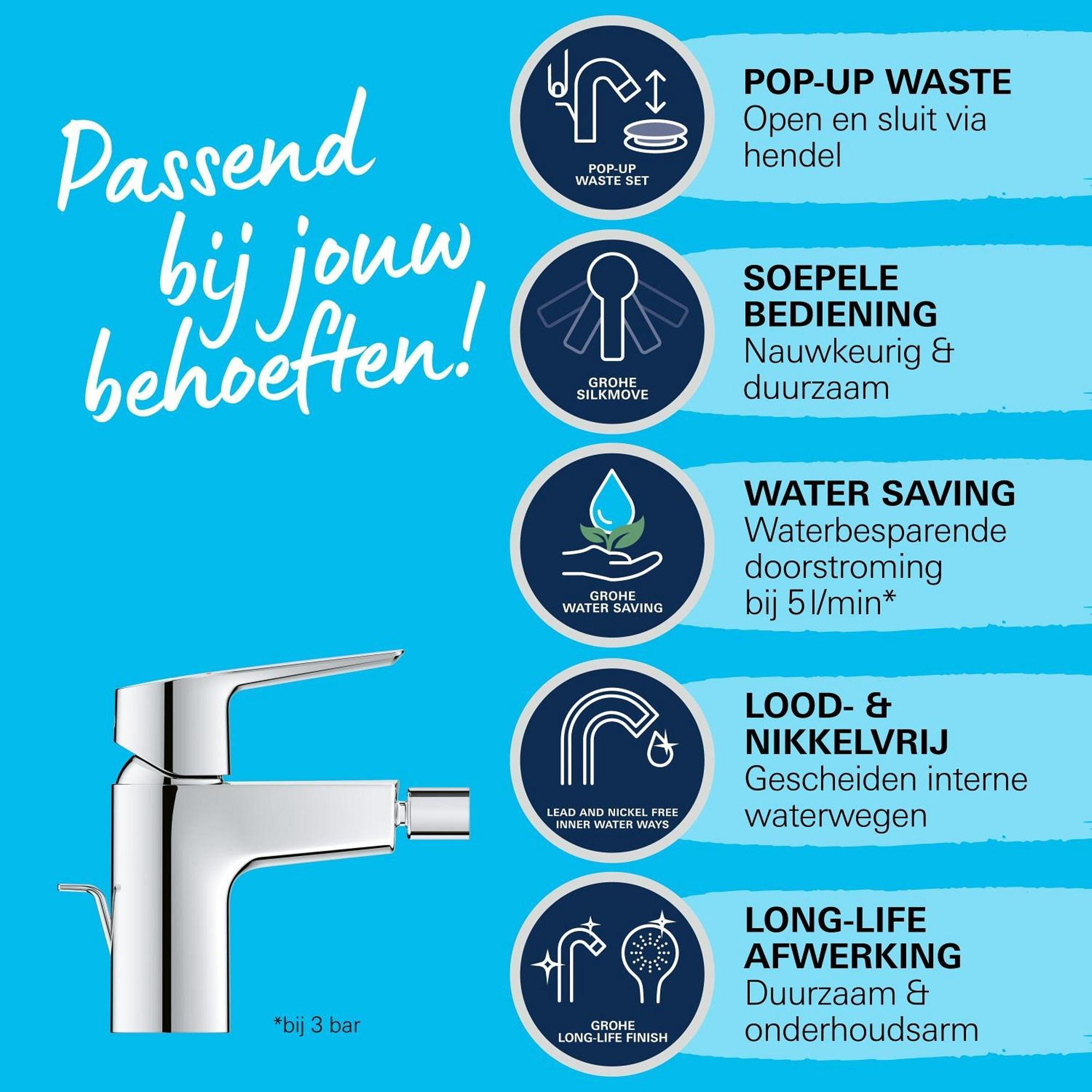 GROHE Start bidetkraan s-size met trekwaste chroom