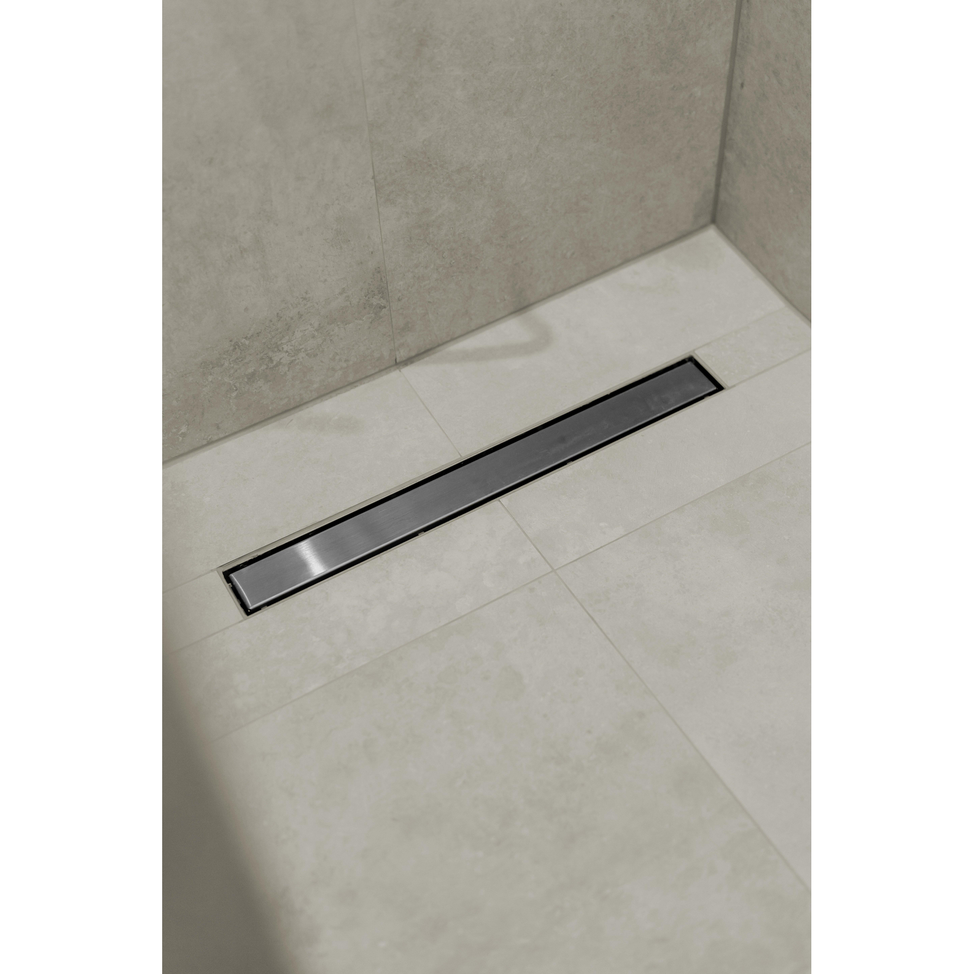 Naast zijn esthetische waarde biedt de Fortifura Galeria douchegoot ook uitstekende functionaliteit. Het ontwerp met gesloten rooster voorkomt verstoppingen en zorgt voor een efficiënte waterafvoer. De 90cm lengte is ideaal voor verschillende doucheruimtes en de vloerflens zorgt voor een eenvoudige installatie op elke vloer.