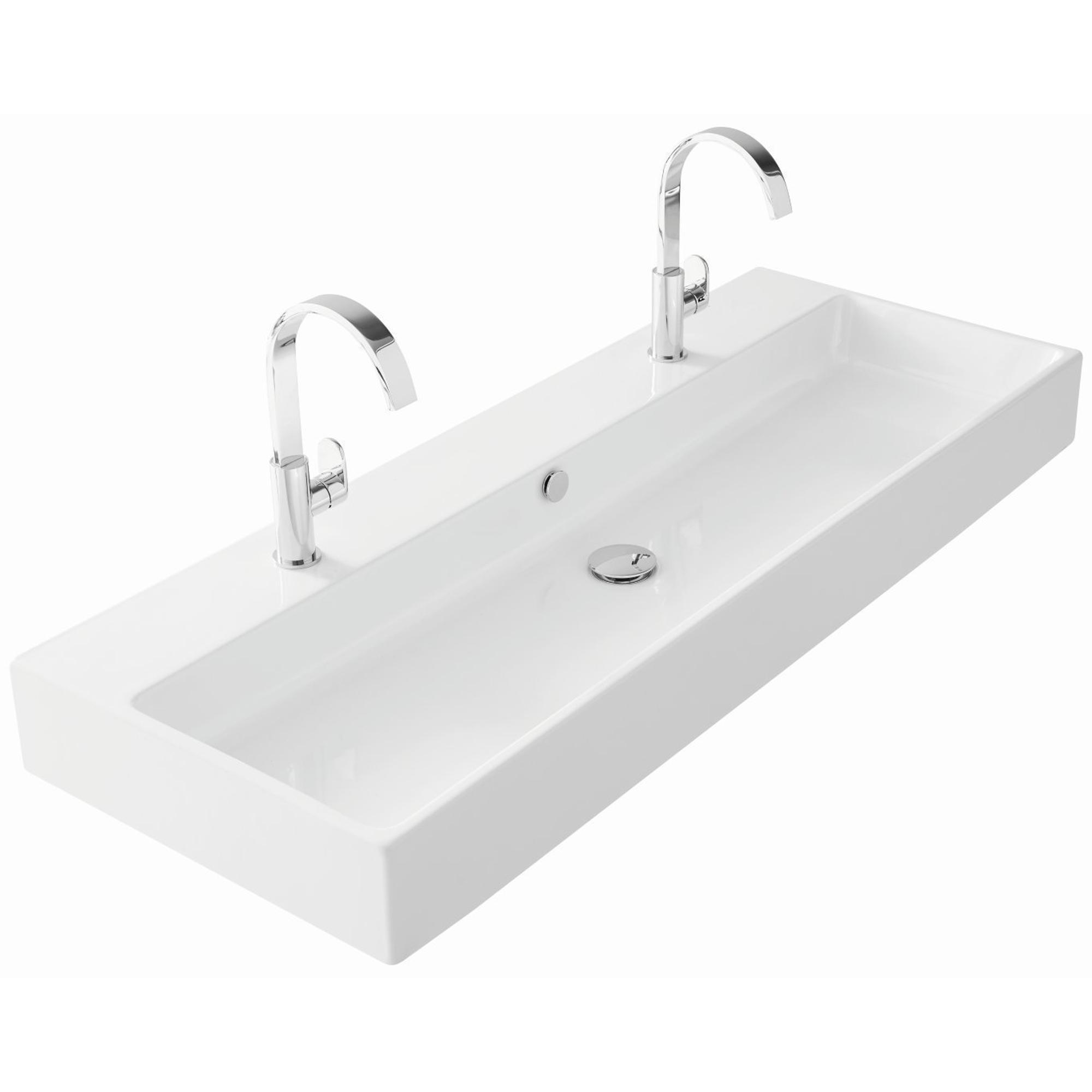 Thebalux wastafel quadro 120cm keramiek 1x kom 2x kraangat