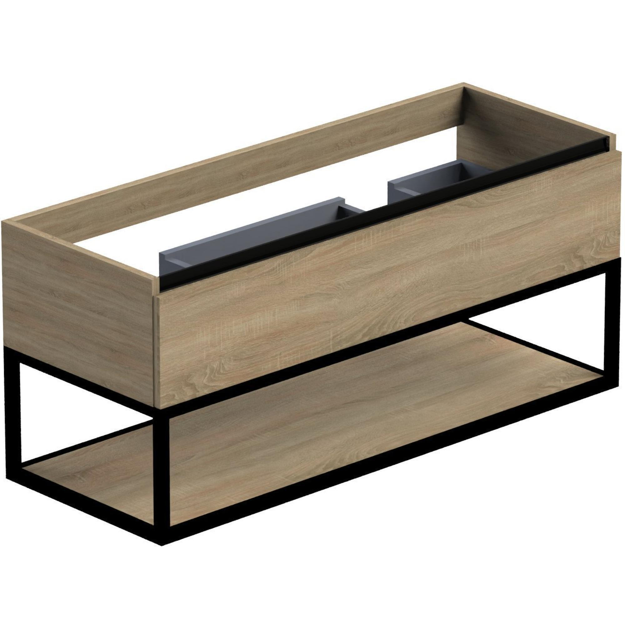 Thebalux onderkast type1 120cm 1x lade greeploos 1x alu greeplijst mat zwart met frame mat zwart en 1x inleg 2x uitsparing tbv wastafels Epic Slimline Soft en Glacier incl witte sifonset