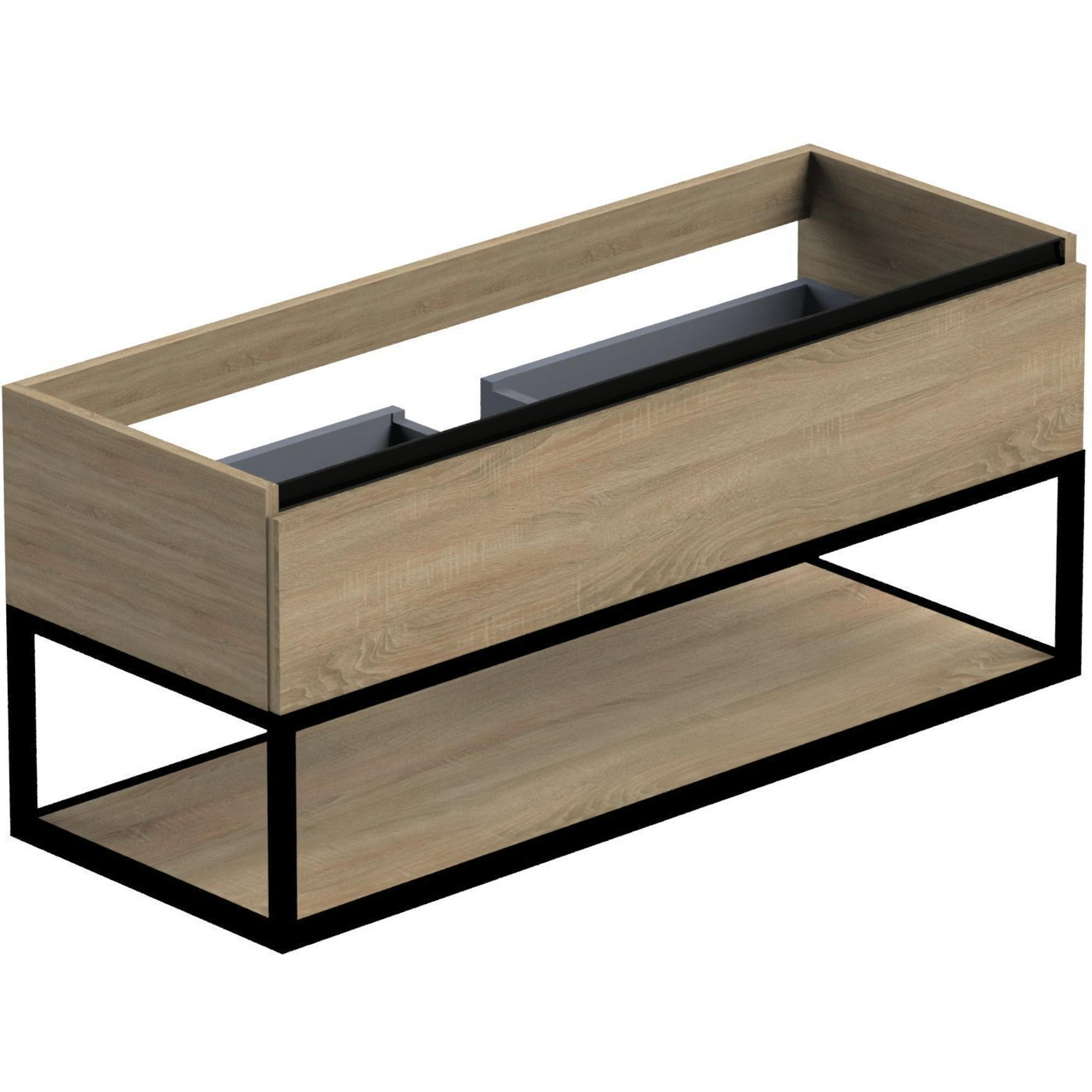 Thebalux onderkast type1 120cm 1x lade greeploos 1x alu greeplijst mat zwart met frame mat zwart en 1x inleg 1x uitsparing tbv wastafel Cube Quadro en Soft incl witte sifonset