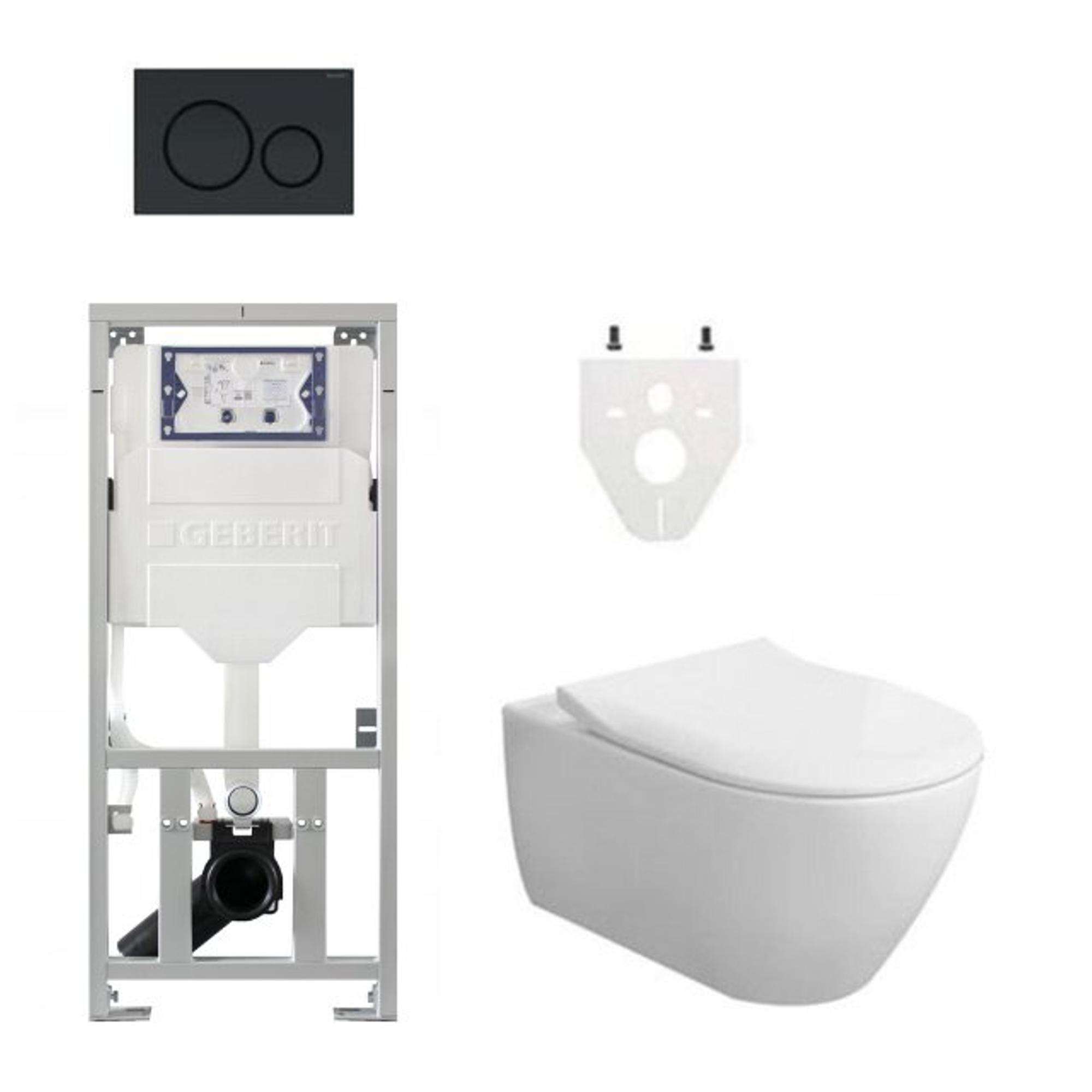 - Complete set met wandcloset, slimseat zitting, inbouwreservoir, isolatiemat en mat zwarte bedieningsplaat