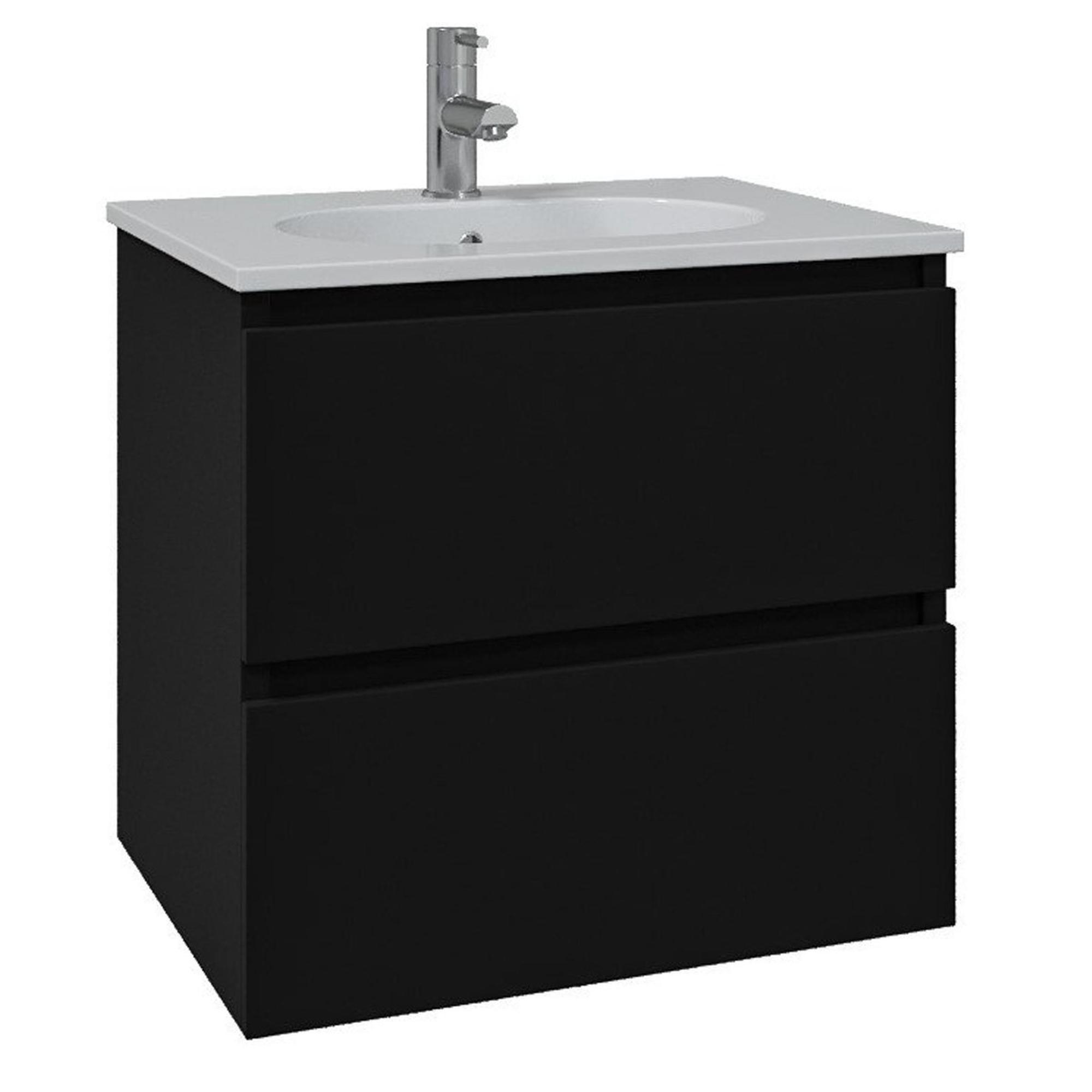 Saniclass Chaci Badkamermeubelset - 60x46x57cm - keramische wastafel wit - 1 ovale wasbak - 1 kraangat - 2 lades - mat zwart