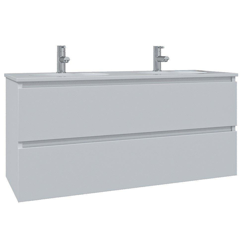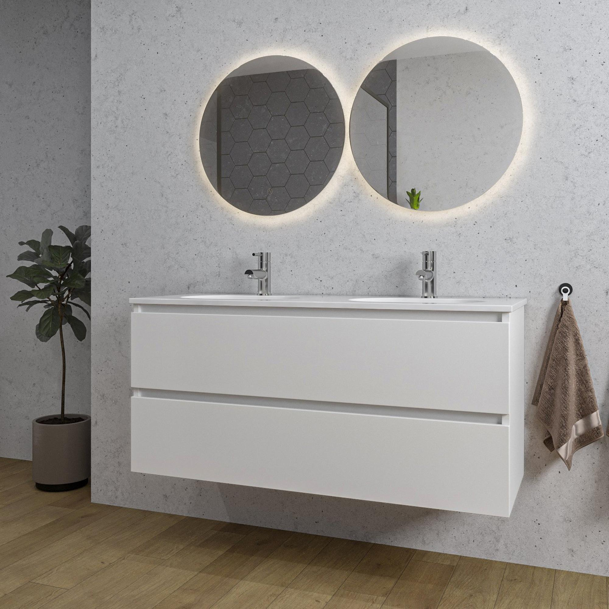 Saniclass Chaci Badkamermeubelset - 120x46x57cm - keramische wastafel wit - 2 ovale wasbakken - 2 kraangaten - 2 lades - mat wit