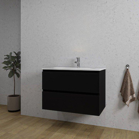 Saniclass Chaci Badkamermeubelset - 80x46x57cm - keramische wastafel wit - 1 ovale wasbak - 1 kraangat - 2 lades - mat zwart