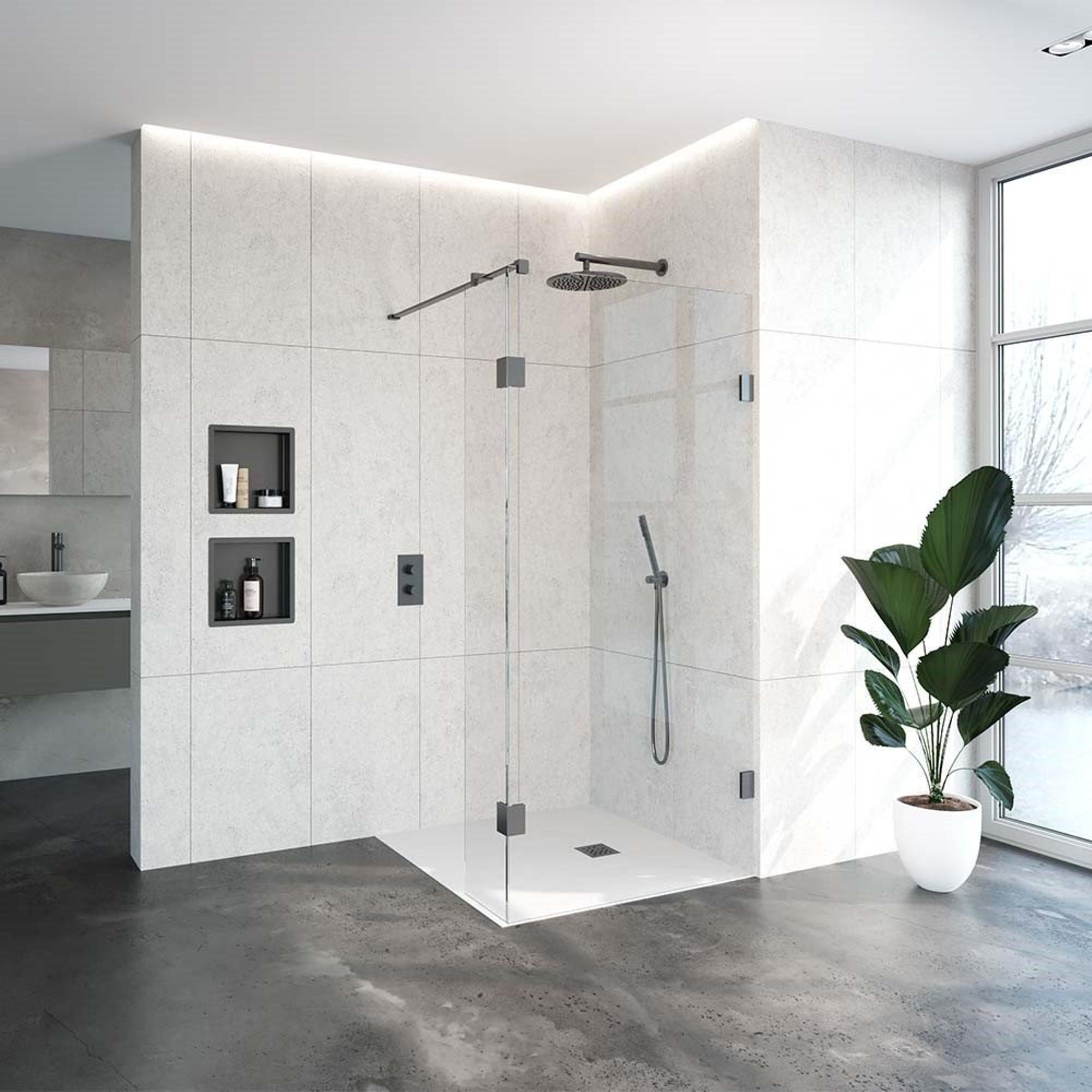 Deze inloopdouche is veelzijdig in gebruik en past zich moeiteloos aan verschillende badkamerstijlen aan. Of je nu een moderne, industriële of minimalistische inrichting hebt, de Saniclass Create inloopdouche voegt een vleugje elegantie toe aan elke ruimte. Het gunmetal geborstelde frame geeft een tijdloze uitstraling en zorgt voor een harmonieus geheel in de badkamer.