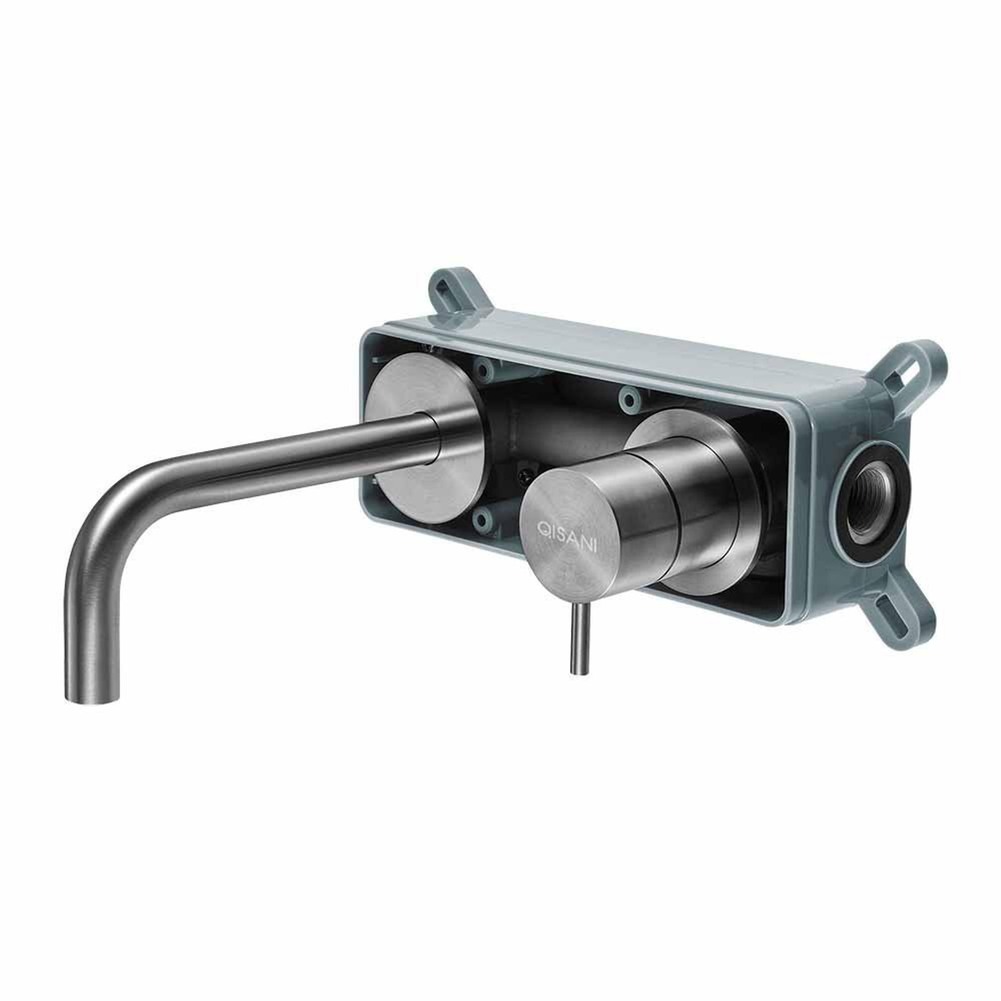 Qisani Flow inbouwwastafelkraan met 15cm uitloop Geborsteld Rvs