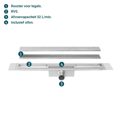 Deze douchegoot van Easy Drain wordt geleverd inclusief rooster. Dit betekent dat je je geen zorgen hoeft te maken over het uitzoeken van een passend rooster en weet je zeker dat je een perfect passend rooster voor je douchegoot krijgt.