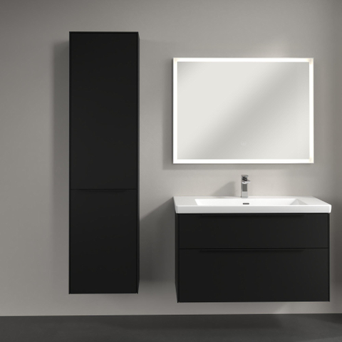 Villeroy & Boch Subway 3.0 Badkamerkast - opbouw - 45x35x170cm - 1 linksdraaiende softclose deur - volcano Black greep - spaanplaat - volcano black