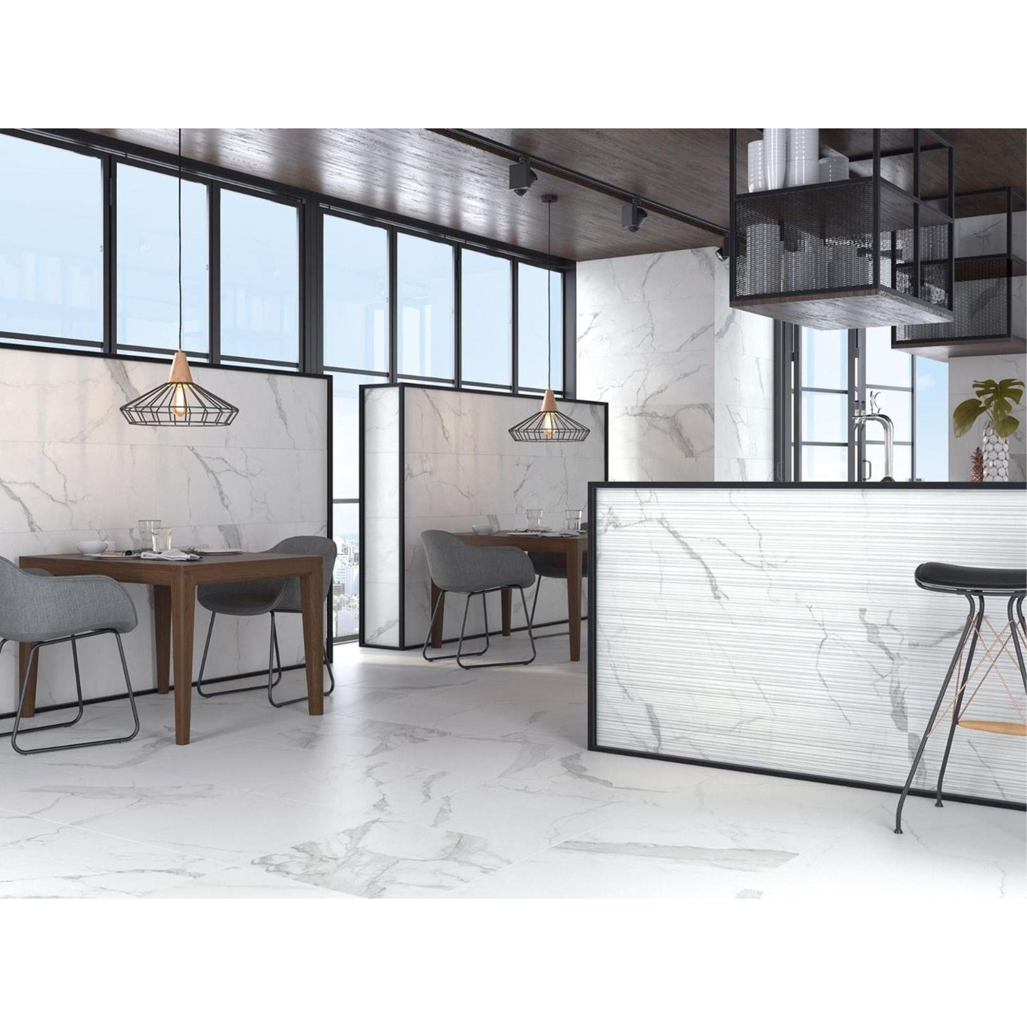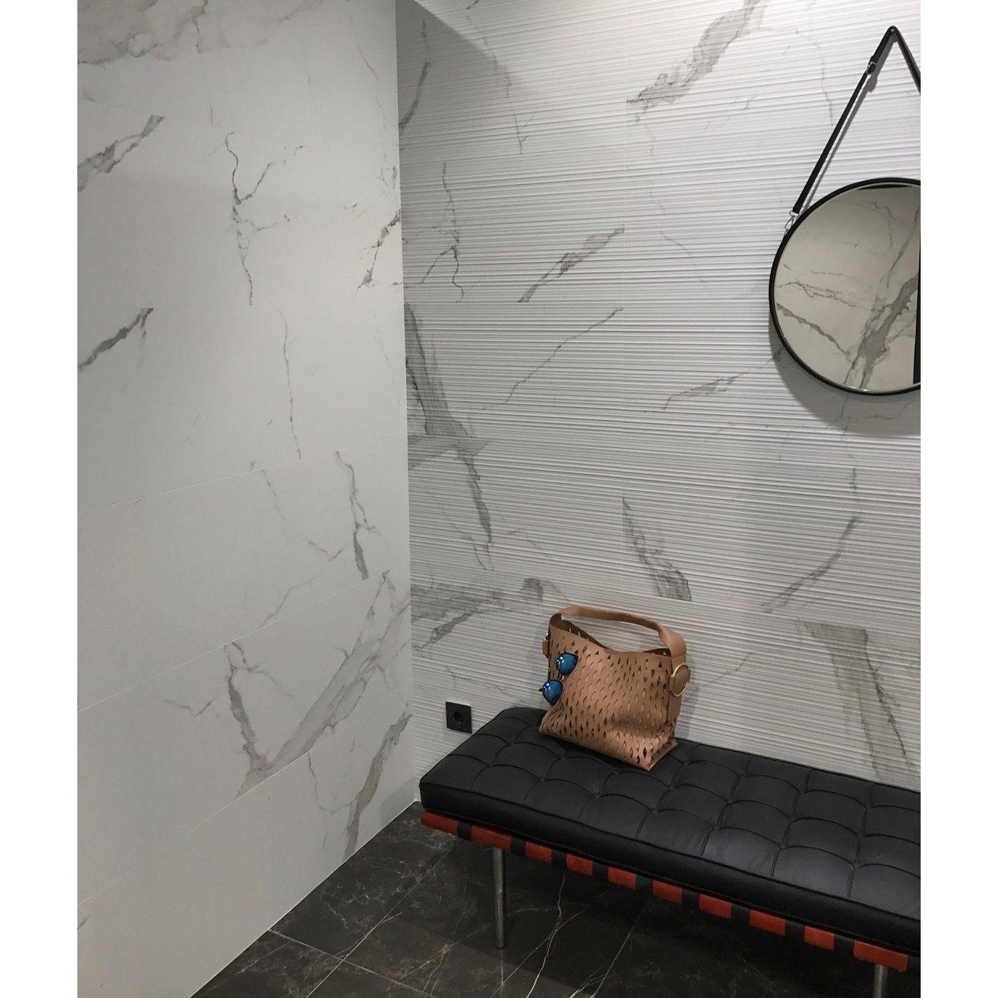 Met deze luxueuze wandtegel creëer je een luxueuze en weelderige sfeer in jouw badkamer of keuken. De hoogwaardige kwaliteit van de tegel zorgt ervoor dat deze lang mooi blijft en bestand is tegen dagelijks gebruik. De gerectificeerde afwerking zorgt voor strakke en nauwkeurige voegen, wat het geheel een naadloze uitstraling geeft. Laat jezelf omringen door luxe en comfort met deze prachtige marmerlook tegel.