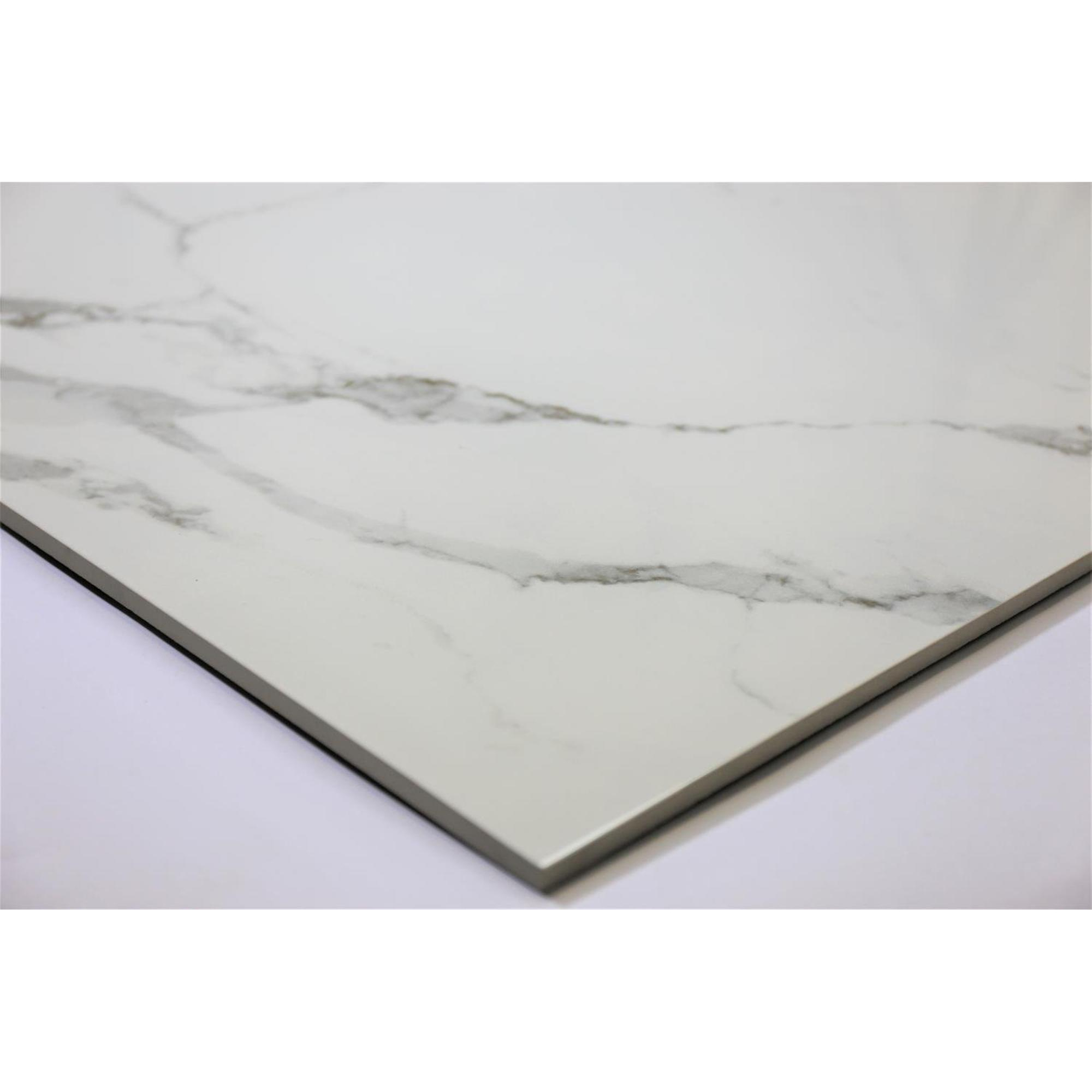 De majestueuze uitstraling van deze tegel wordt benadrukt door de prachtige glans en de gedetailleerde marmerlook. Het glanzende wit en zwart creëren een tijdloze en chique sfeer in de ruimte. De tegel straalt luxe en verfijning uit, waardoor elke ruimte direct een upgrade krijgt naar een hoger niveau van elegantie.