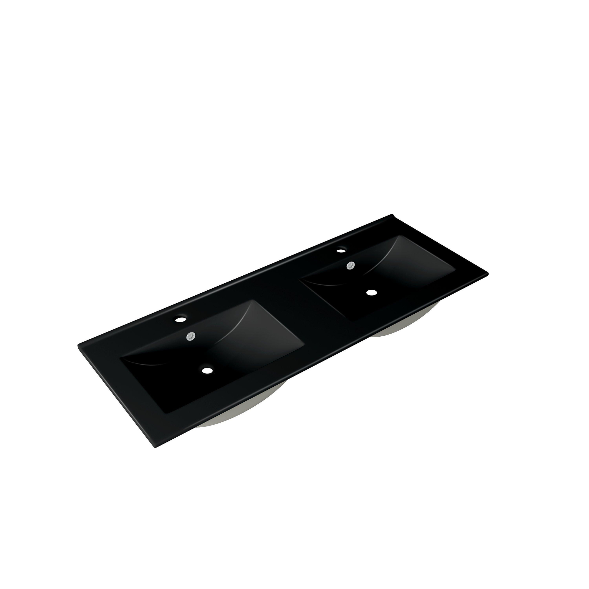 Saniclass Vygo Meubelwastafel - 121x2x46cm - overloop - 2 wasbakken - 2 kraangaten - keramiek - mat zwart