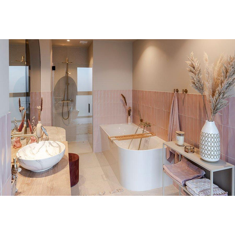 Naast zijn esthetische waarde is dit bad ook uiterst functioneel. Het duurzame Acryl materiaal zorgt voor een lange levensduur en eenvoudig onderhoud, waardoor het bad een praktische en duurzame keuze is voor dagelijks gebruik. De hoek links biedt ook extra ruimtebesparing in de badkamer, waardoor het ideaal is voor kleinere ruimtes zonder in te leveren op stijl en comfort.