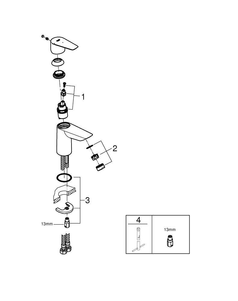 GROHE Bauedge wastafelmengkraan es gladde body ctoc chroom