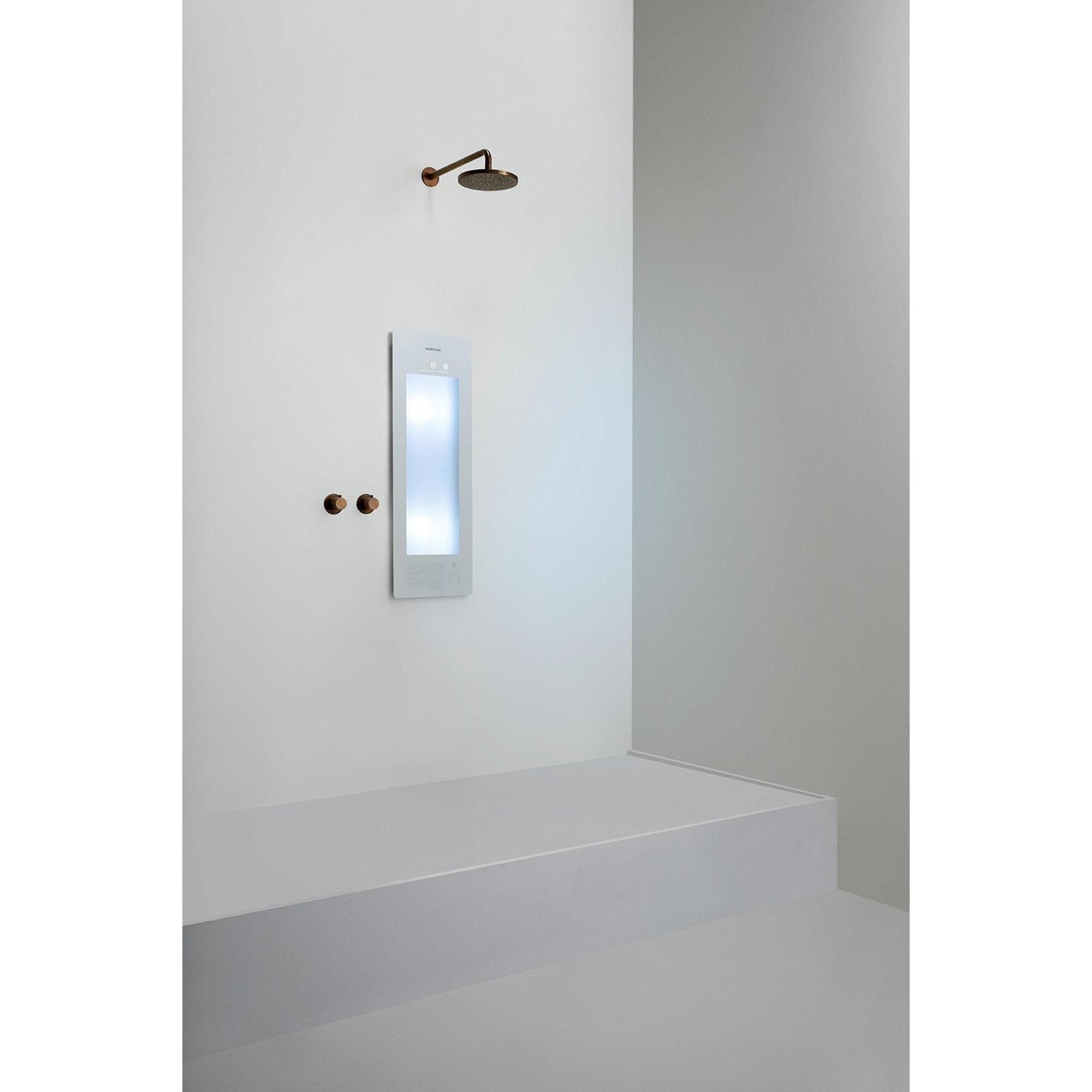 Dit inbouwpaneel is ontworpen met oog voor detail en een minimalistische esthetiek. De witte afwerking en het strakke, rechthoekige design zorgen ervoor dat het naadloos integreert in elke moderne badkamer. Omdat het volledig in de muur wordt ingebouwd, steekt het niet uit en behoudt je badkamer een rustige, overzichtelijke uitstraling. Het touchscreen bedieningspaneel is subtiel verwerkt en biedt een gebruiksvriendelijke ervaring zonder afbreuk te doen aan het design. Zo combineer je functionaliteit met een verfijnde look die jouw badkamer naar een hoger niveau tilt.