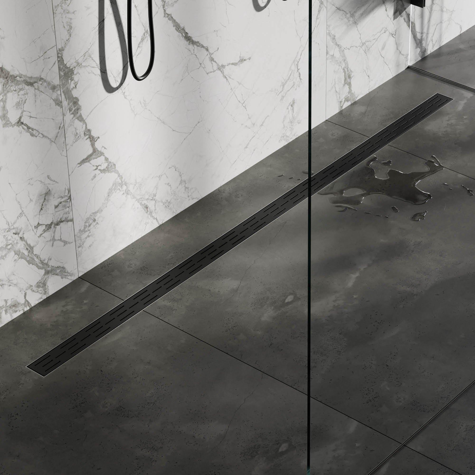 Brauer Douchegoot - 200x7.5cm - vloerflens - RVS - zwart