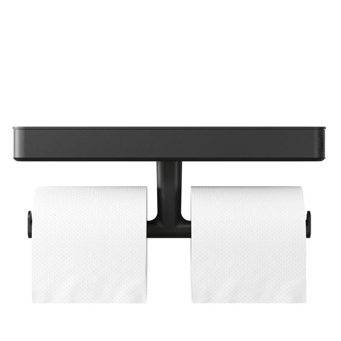 Tiger Carv Toiletrolhouder - dubbel - met planchet - zwart