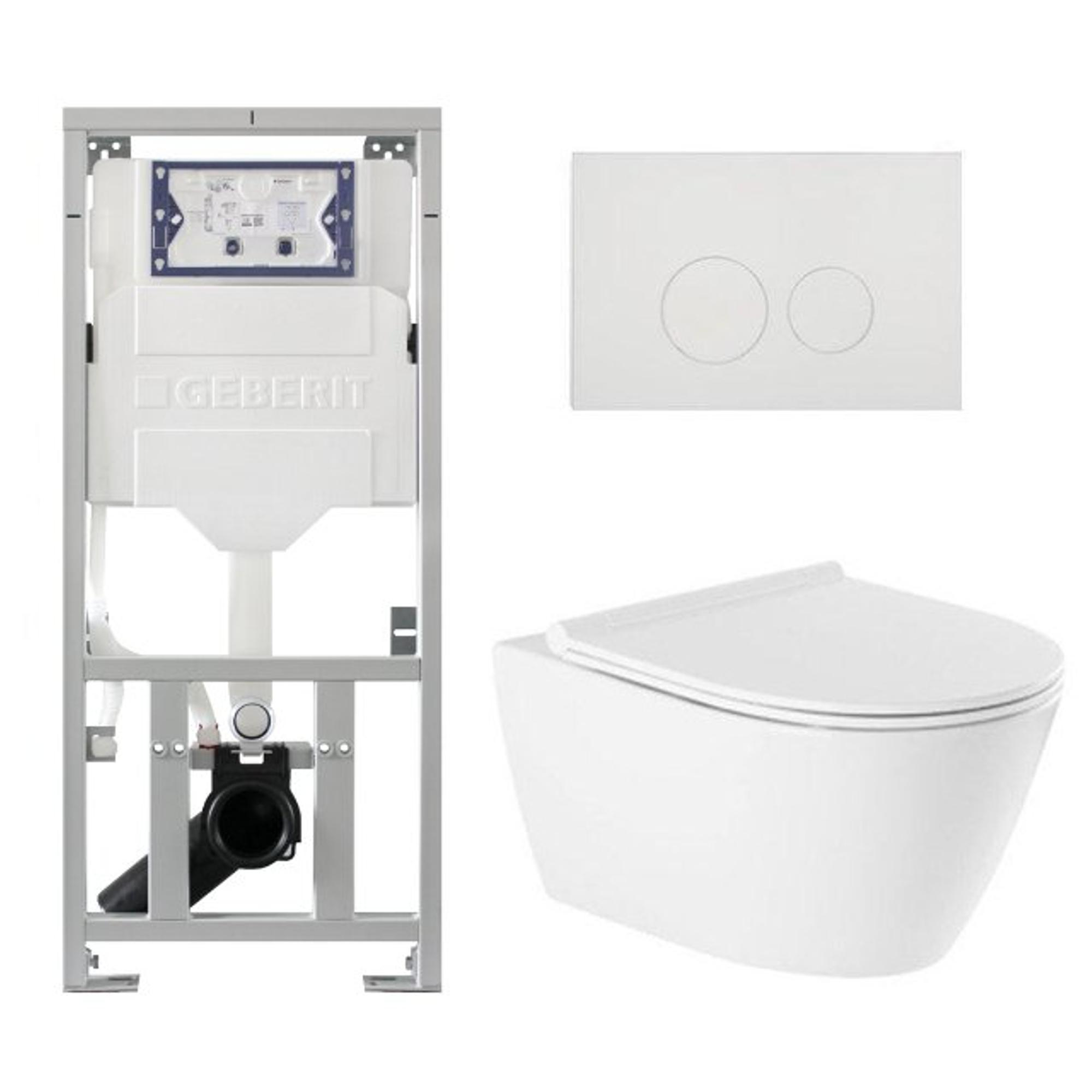 QeramiQ Salina Toiletset - rimless - Geberit inbouwreservoir - diepspoel wandcloset - softclose - quickrelease - ronde knoppen - wit